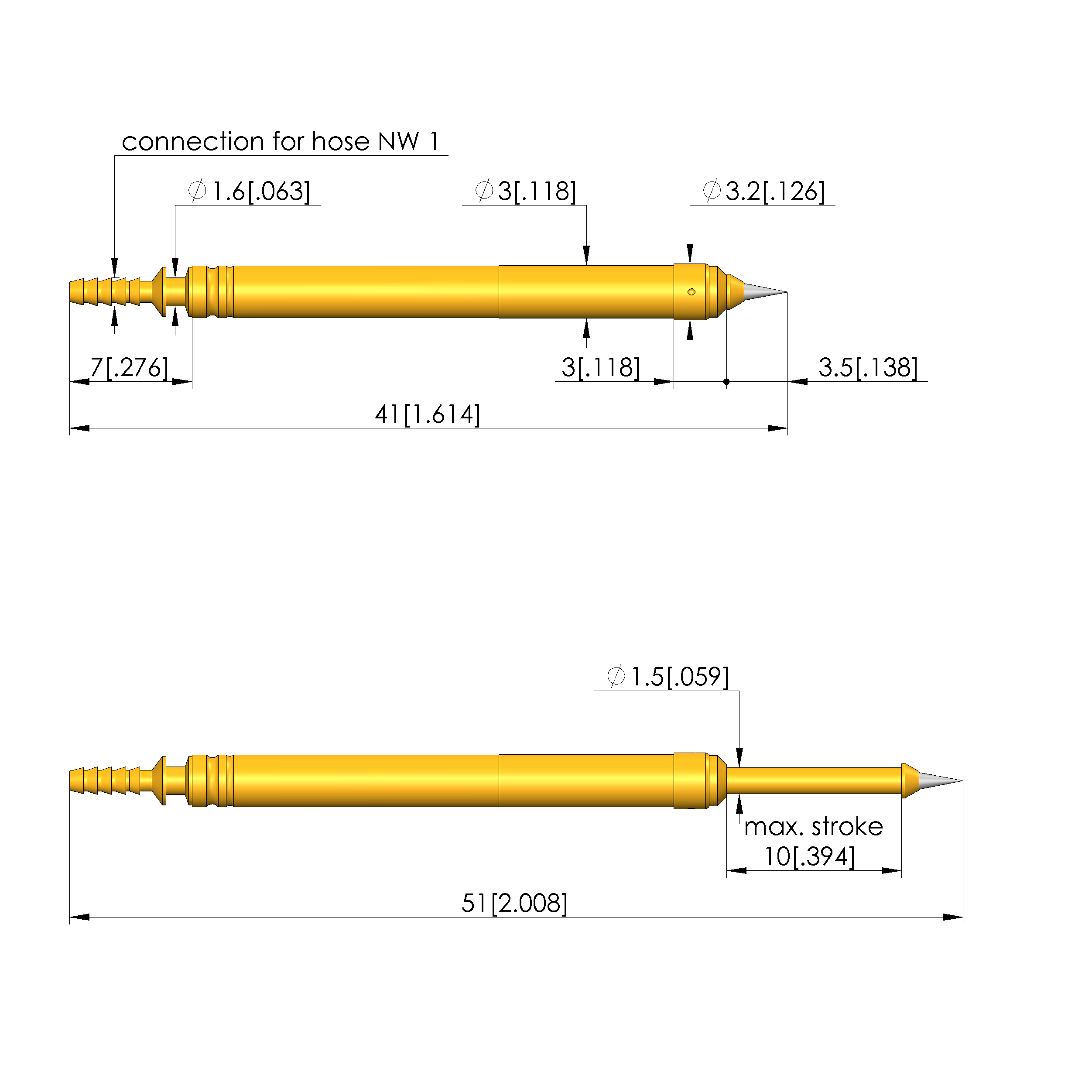 • Barrel diameter: 3 mm [.118 in]