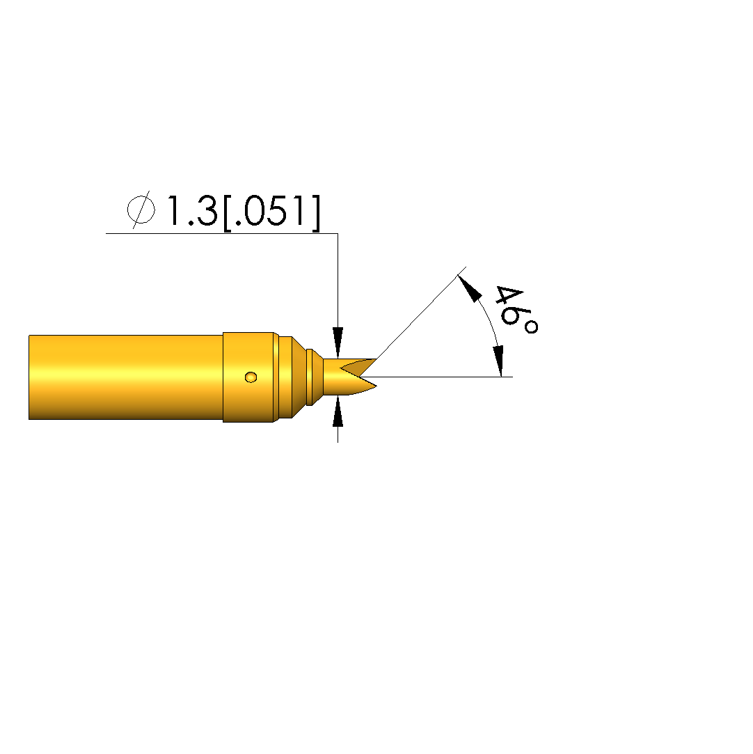 - Tip diameter: 1.3 mm [.051 in]