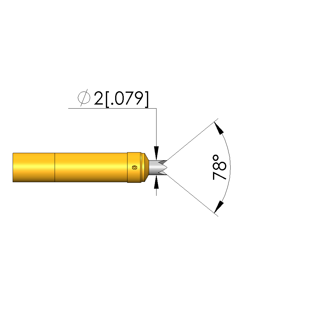 - Tip diameter: 2 mm [.078 in]