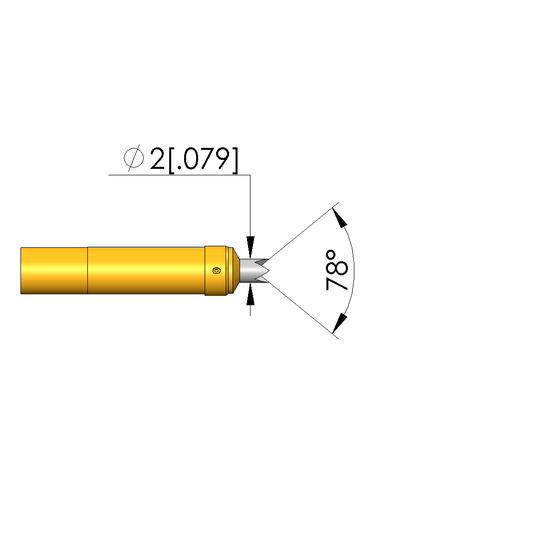 • Tip diameter: 2 mm [.078 in]