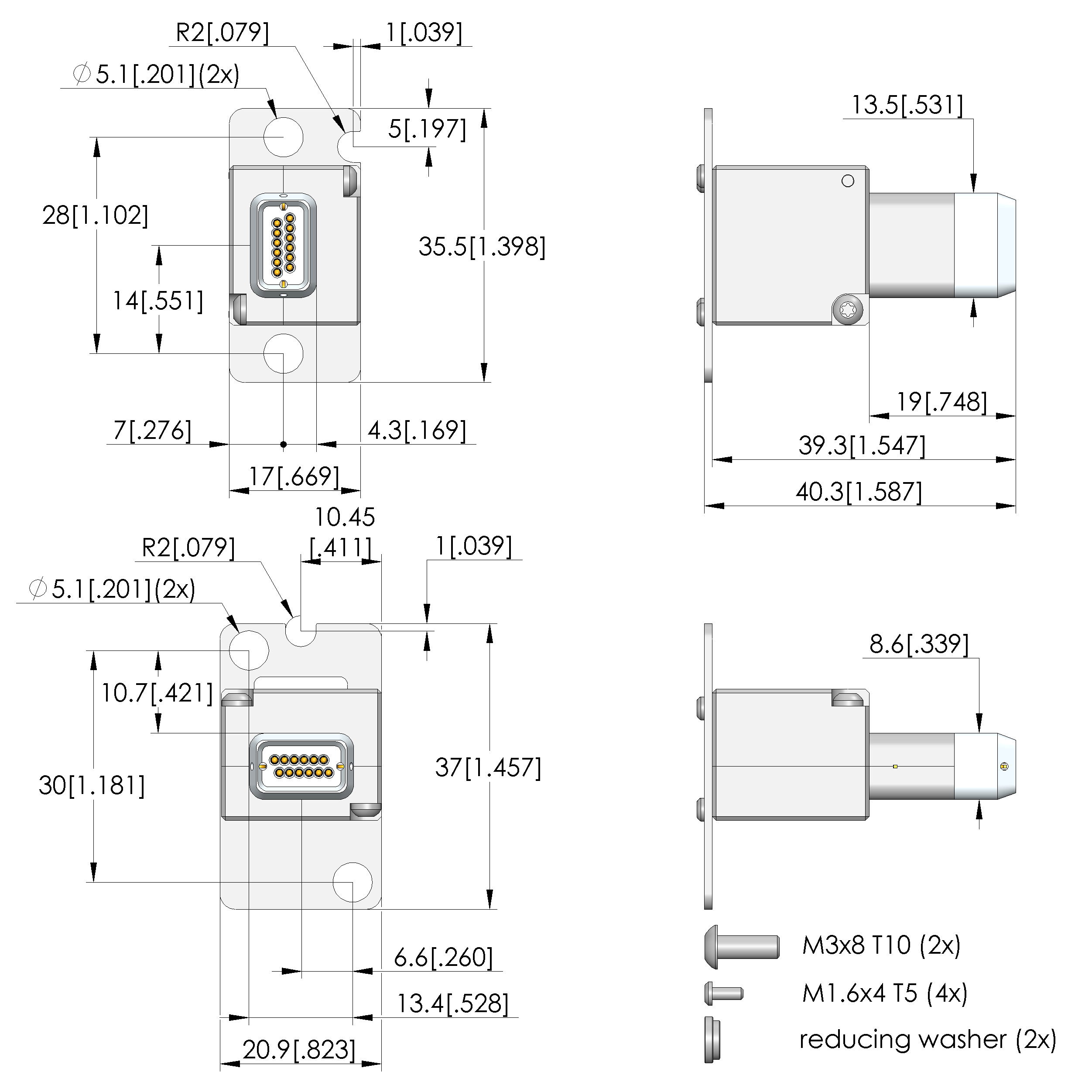 • Total length: 40.3 mm [1.58 in]
