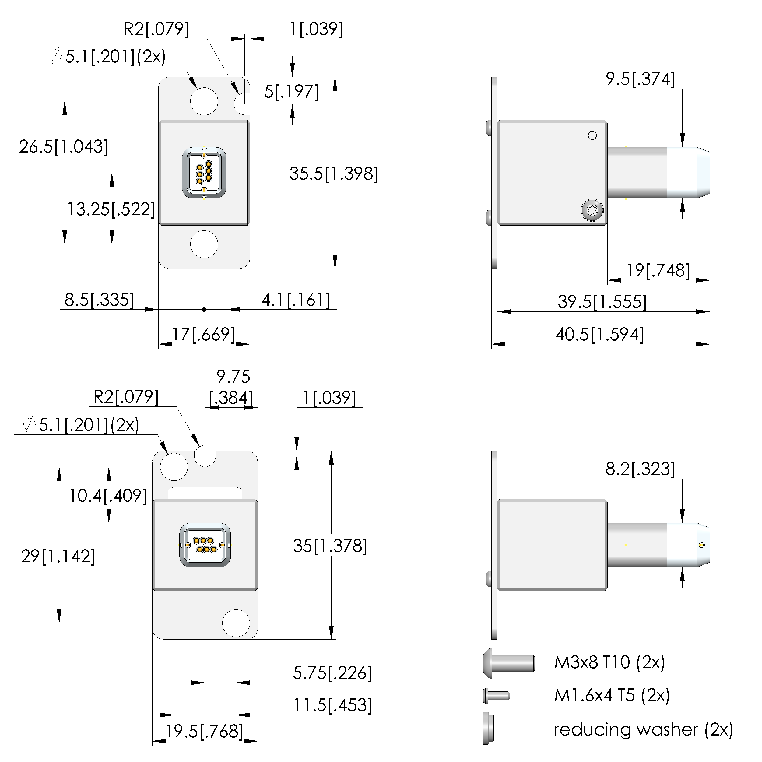 • Inner conductor maximum stroke: 2.5 mm [.098 in]