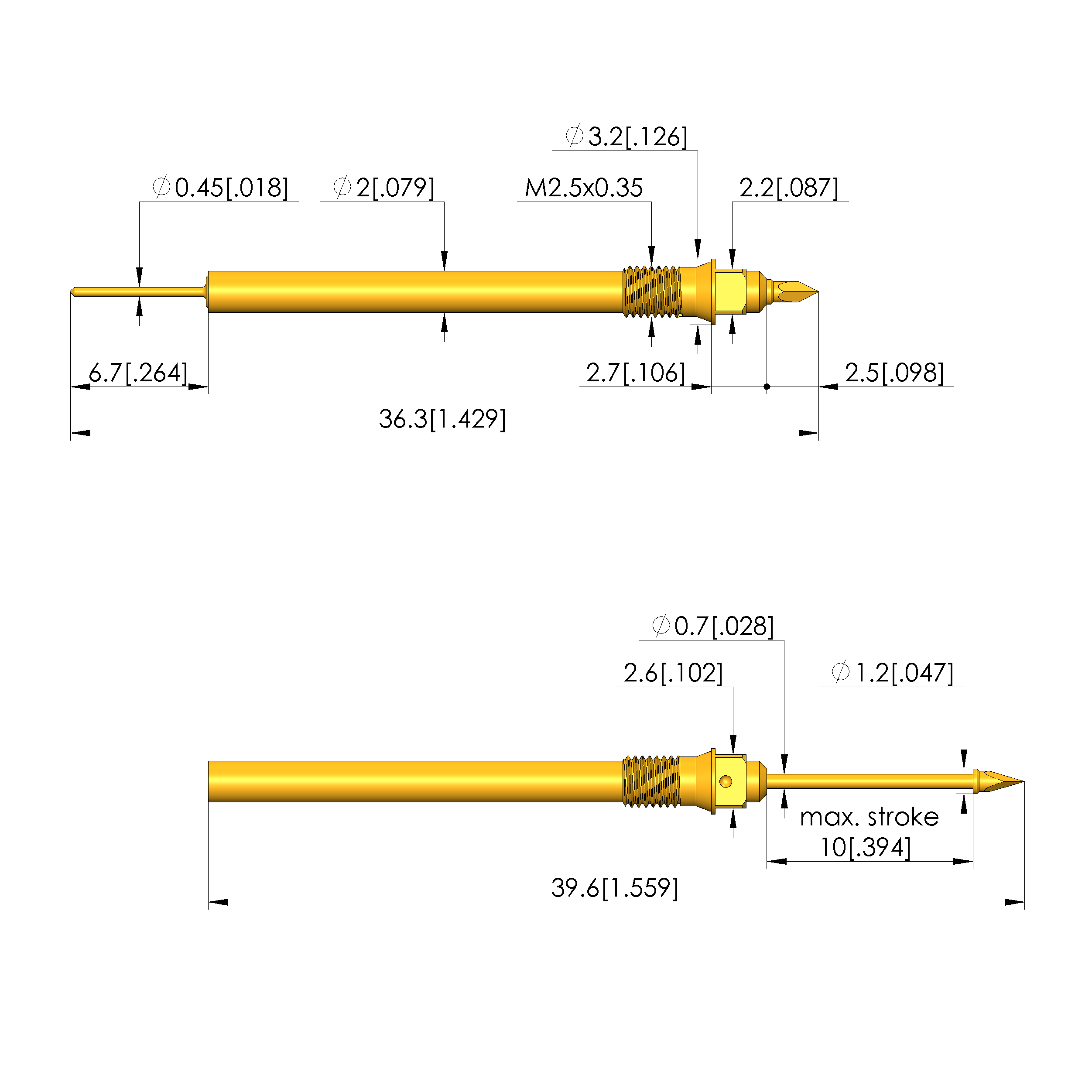 - Spring force at working stroke: 0.6 N [2.15 ozf]
