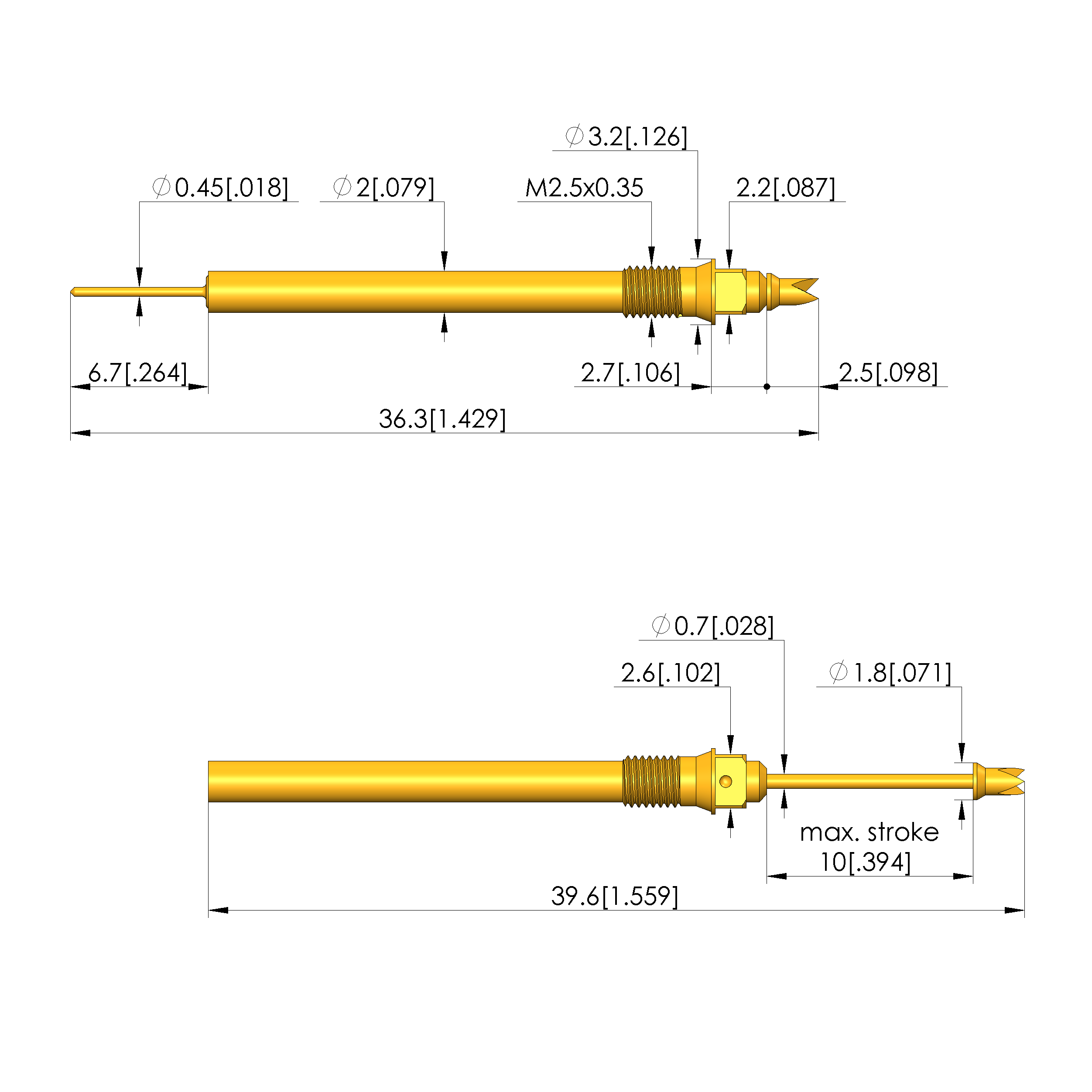 - Spring force at working stroke: 0.6 N [2.15 ozf]