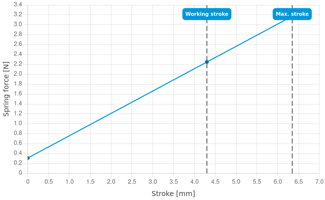 - Spring force at working stroke: 2.25 N [8.09 ozf]