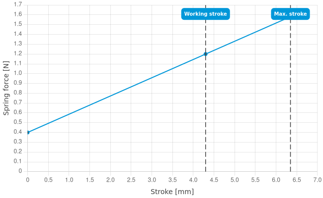 - Spring force at working stroke: 1.2 N [4.31 ozf]