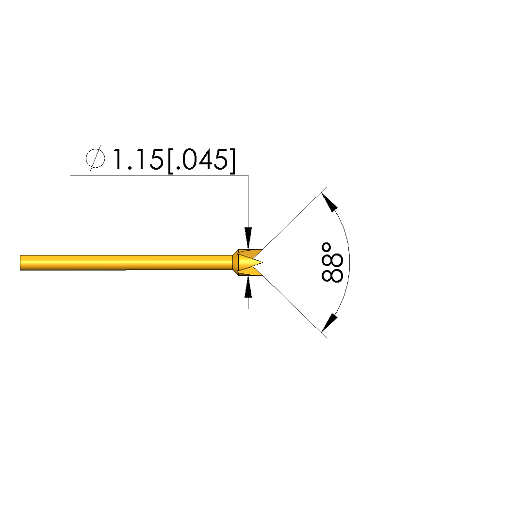 - Tip diameter: 1.15 mm [.045 in]