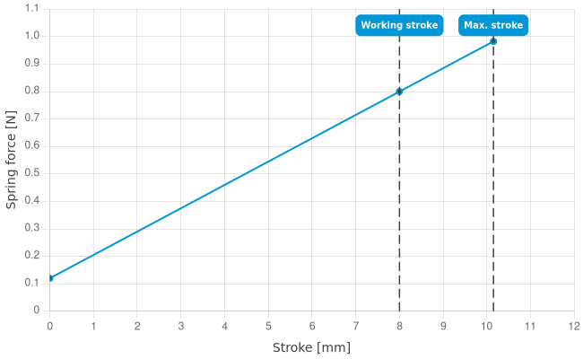 • Spring force at working stroke: 0.8 N [2.87 ozf]