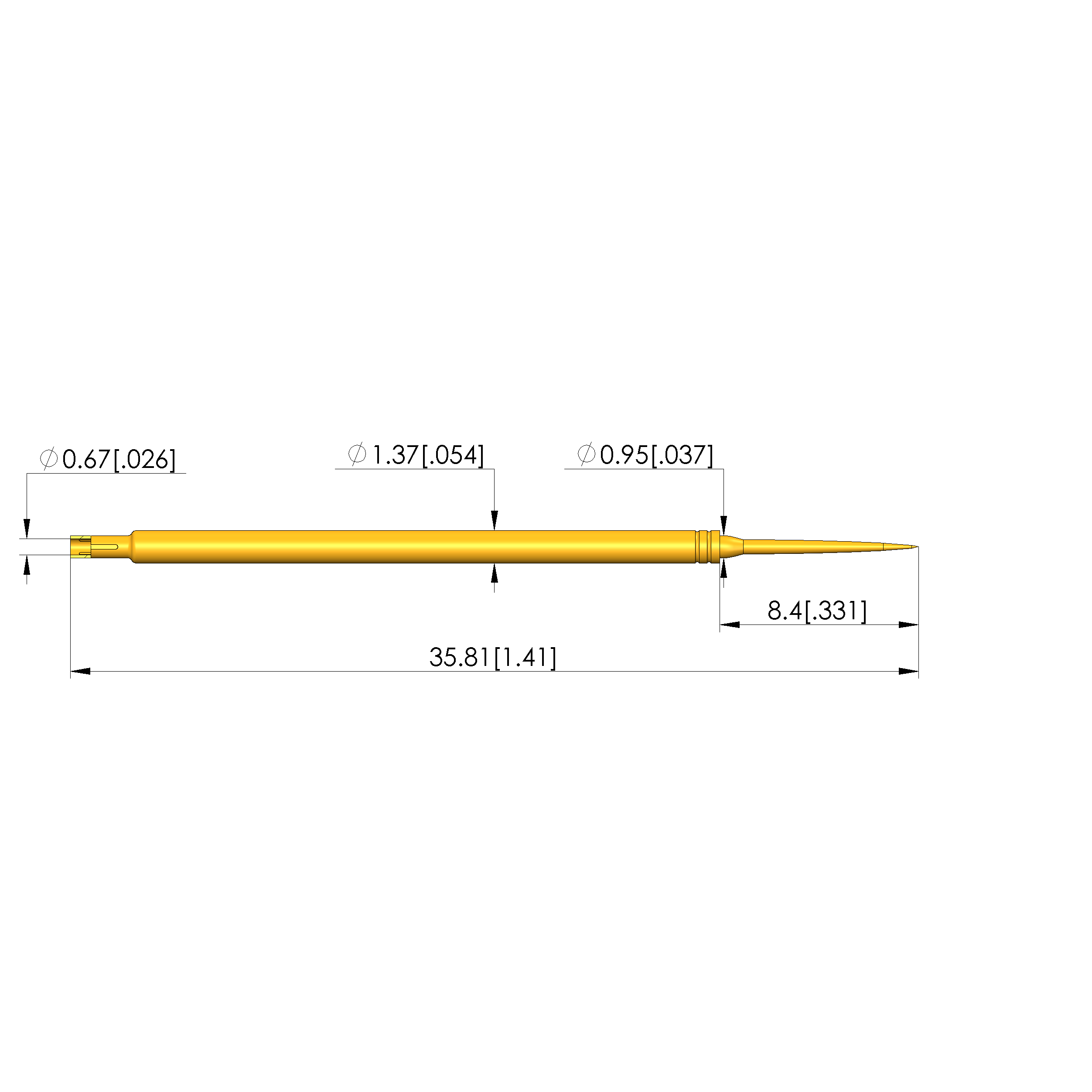 - Barrel diameter: 1.37 mm [.053 in]