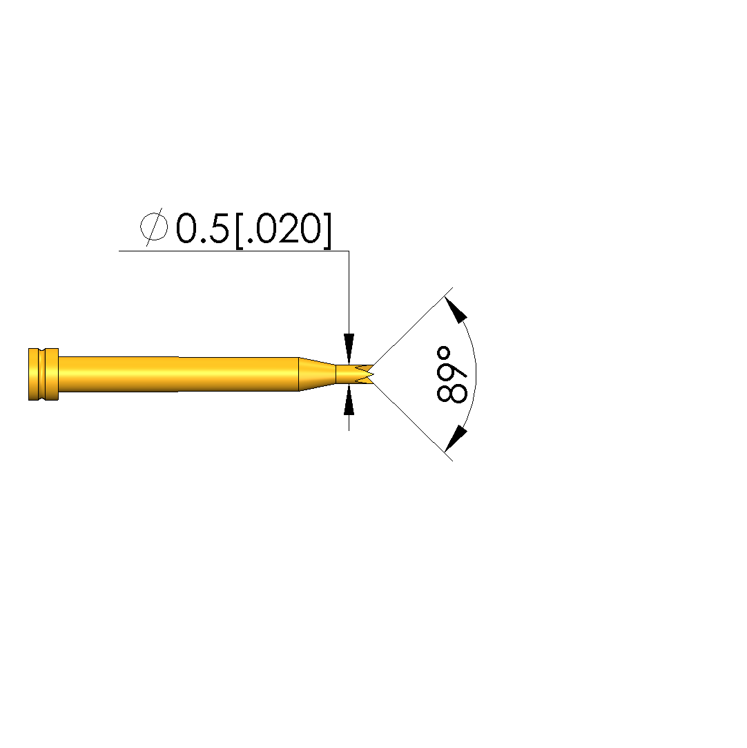 - Tip diameter: 0.5 mm [.019 in]