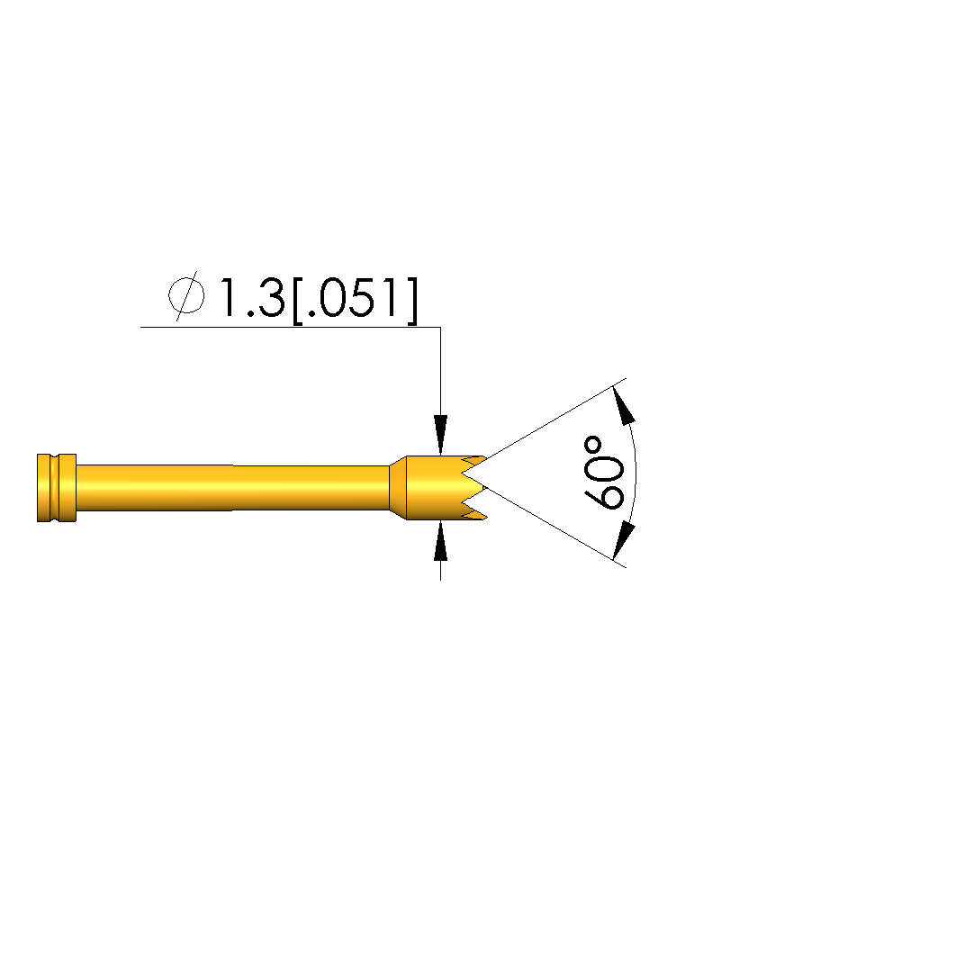 - Tip diameter: 1.3 mm [.051 in]