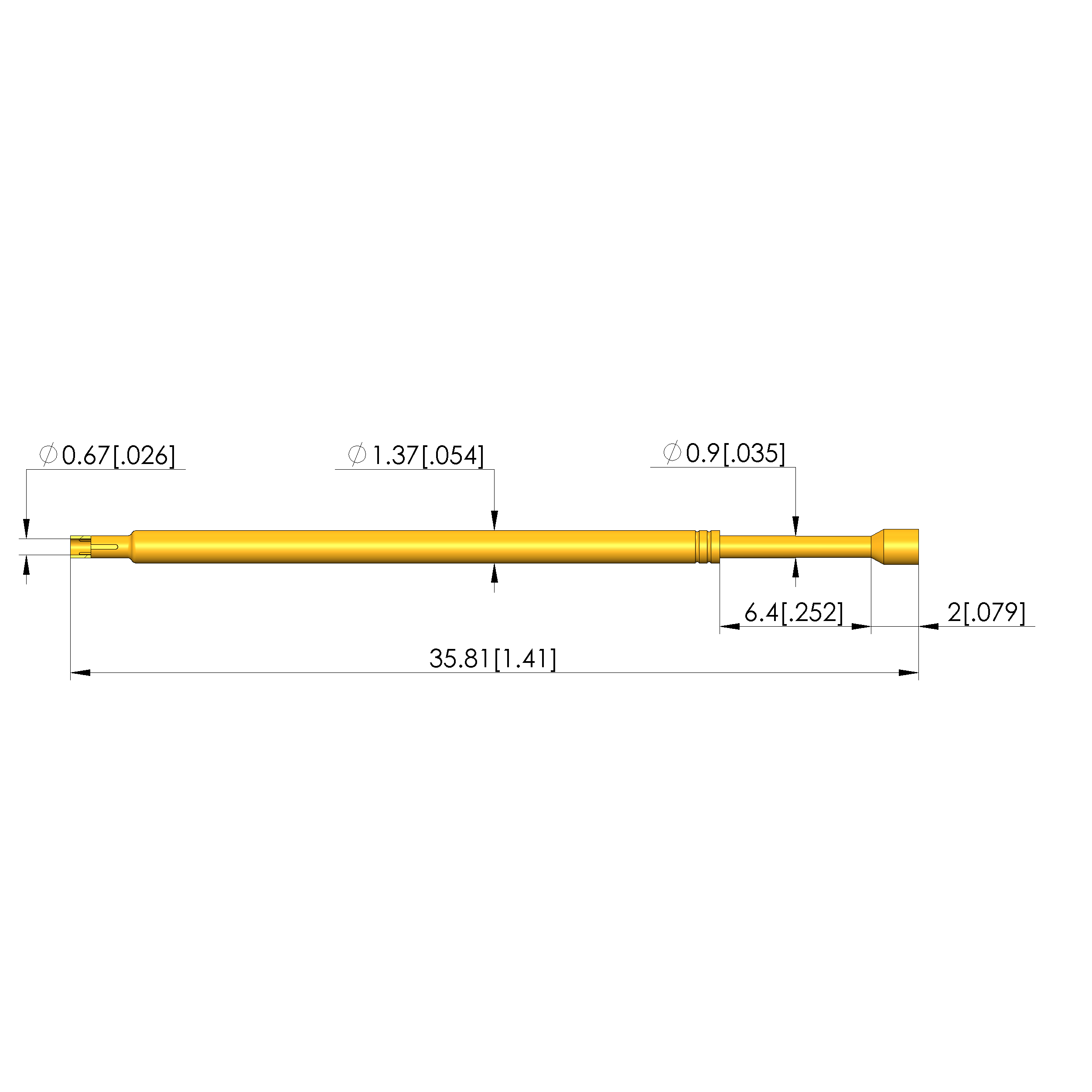 - Barrel diameter: 1.37 mm [.053 in]