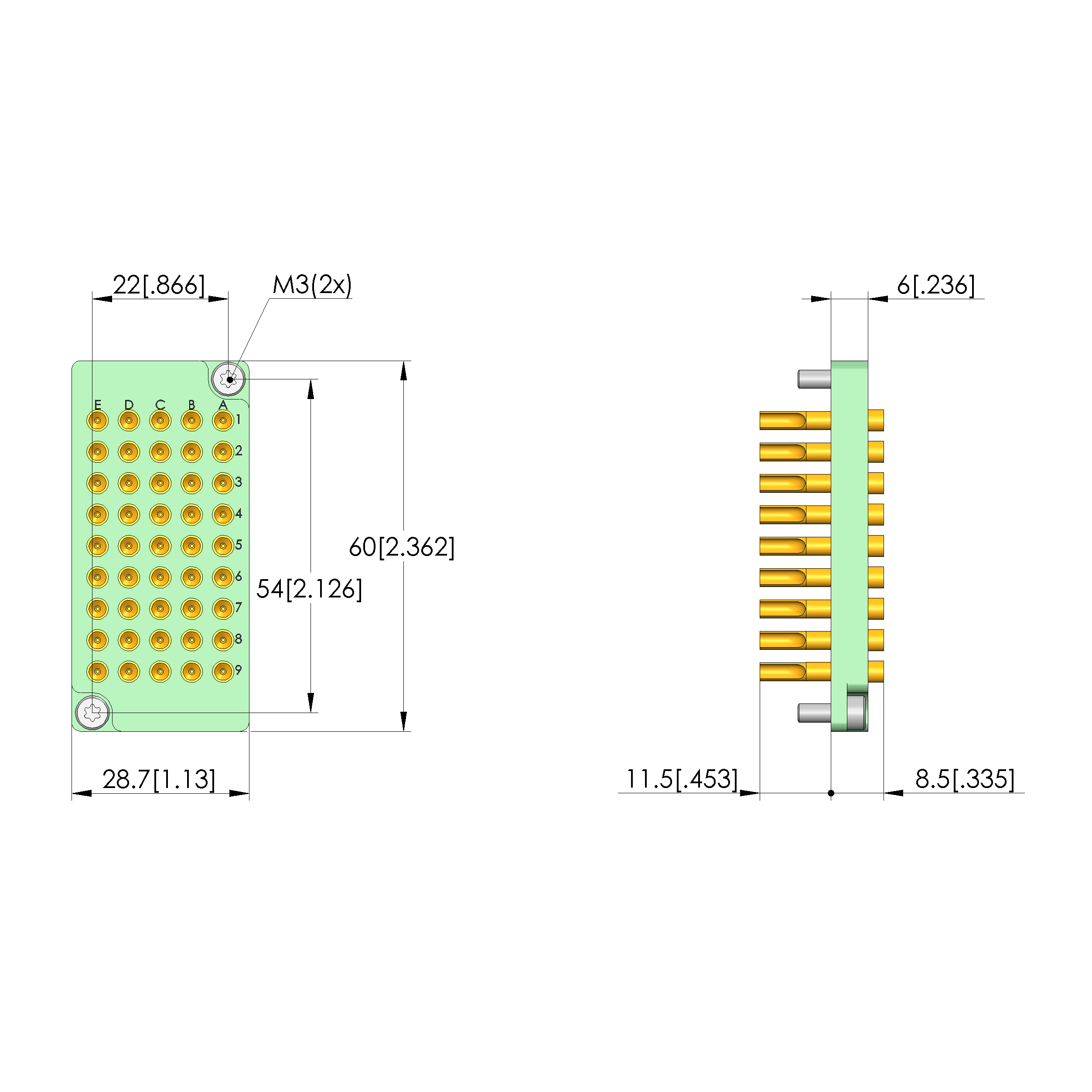 • Air distance (not wired): 1.48 mm [.058 in]