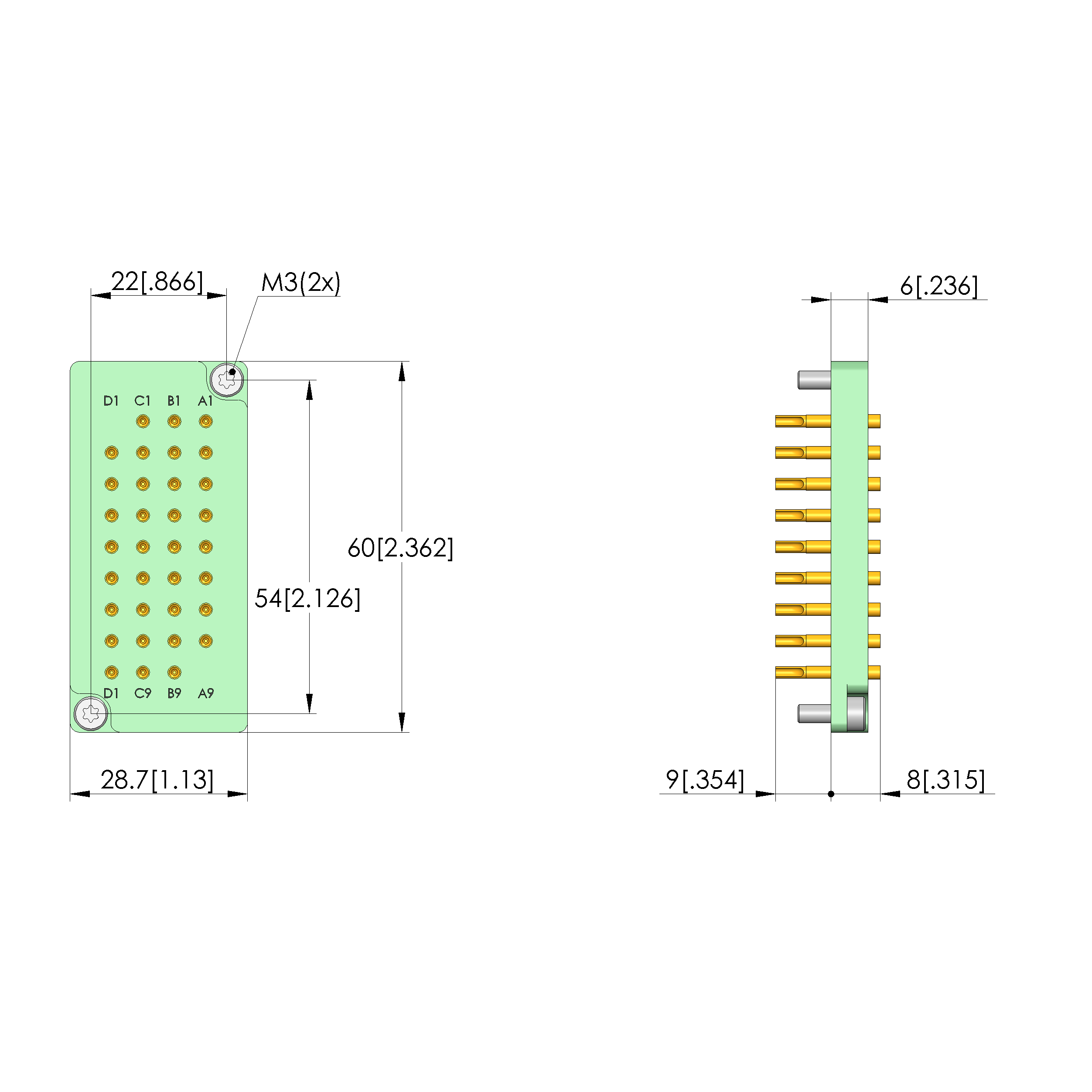 • Min. line cross-section: 0.25 mm² [.00038 in²]