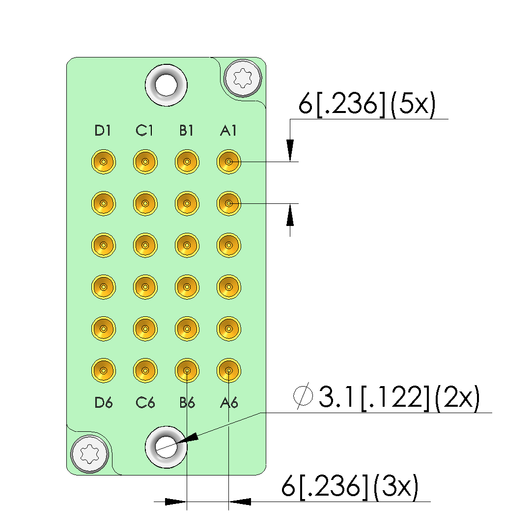 | Air distance (not wired): | 2.4 mm [.094 in] |