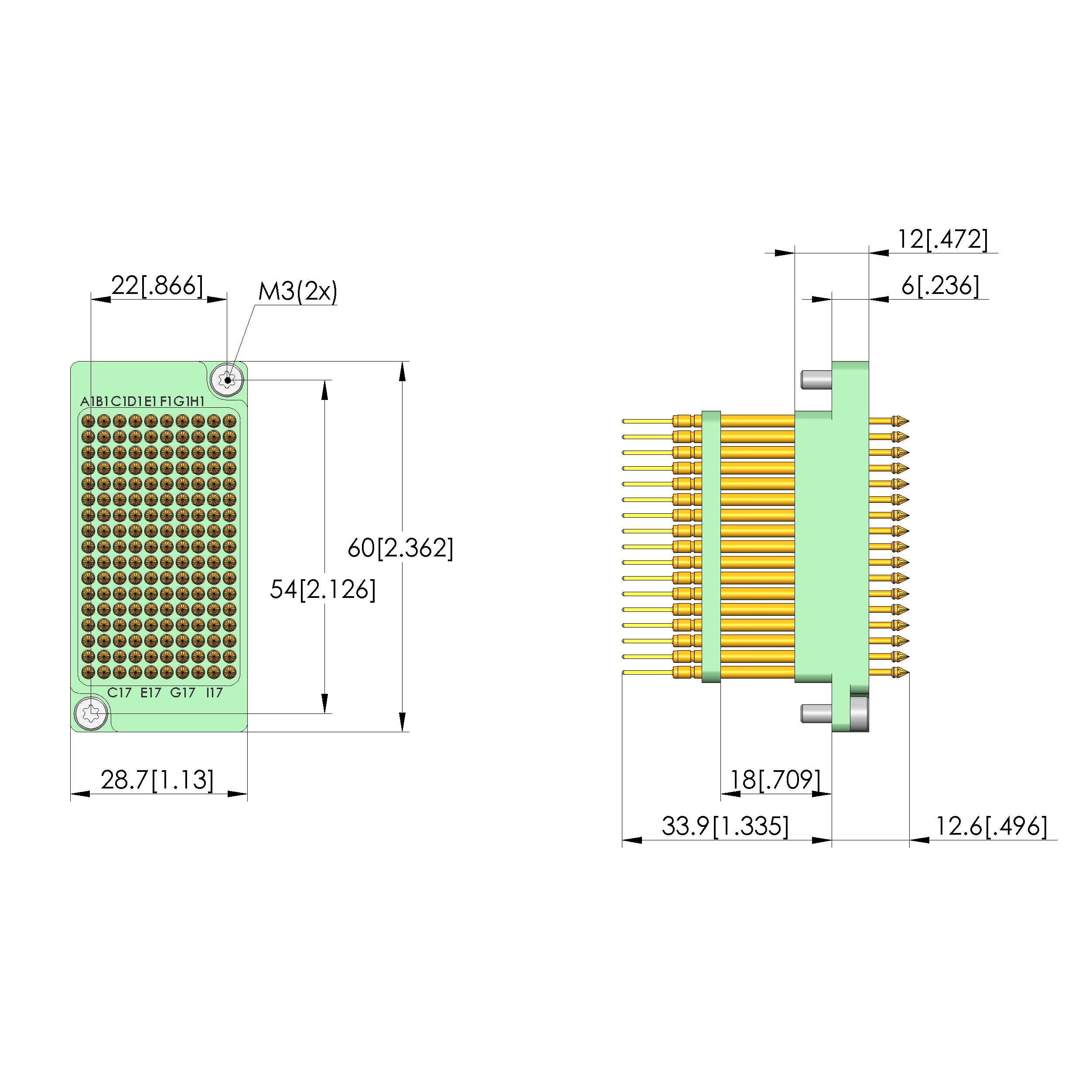 • Air distance (not wired): 0.34 mm [.013 in]