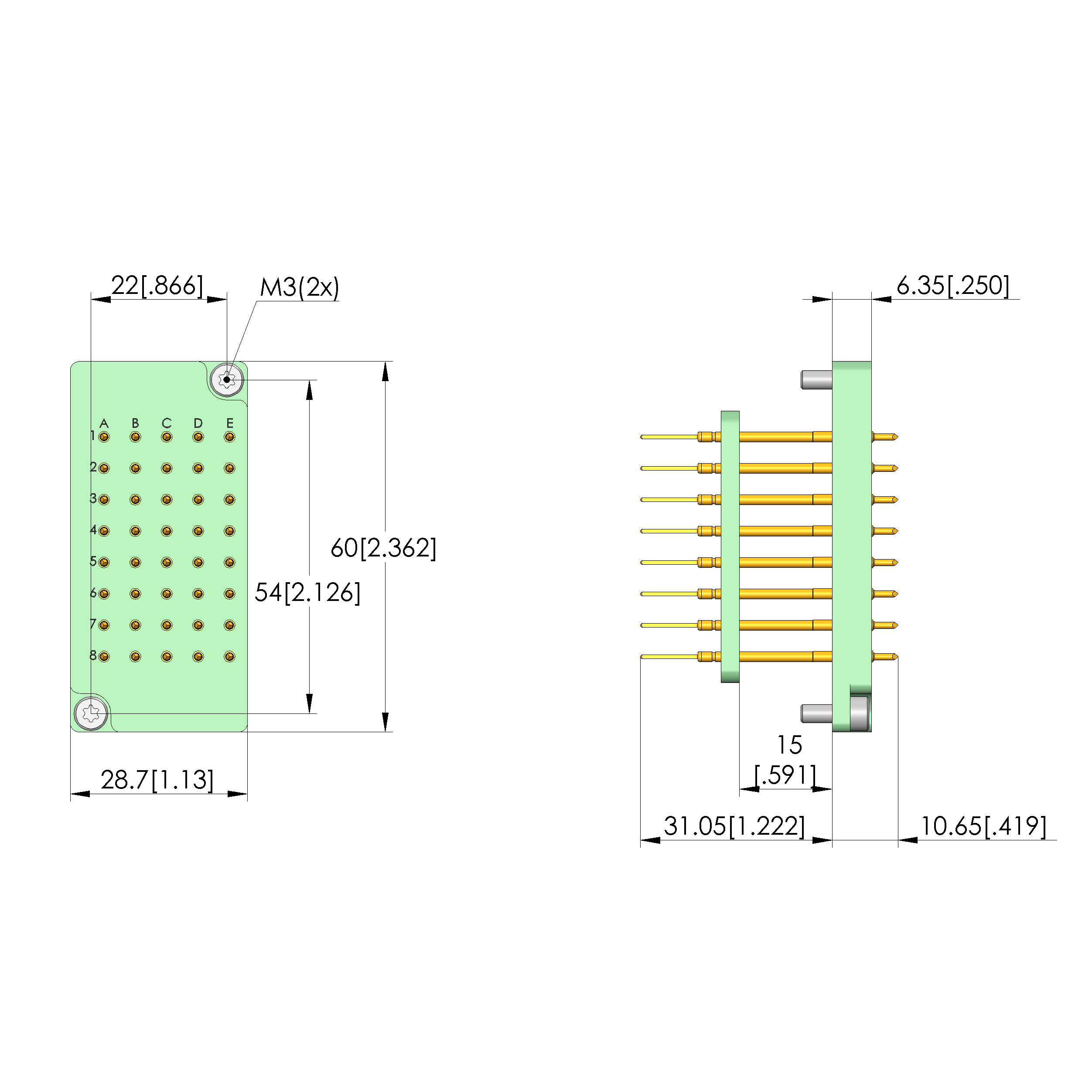| Air distance (not wired): | 3.18 mm [.125 in] |