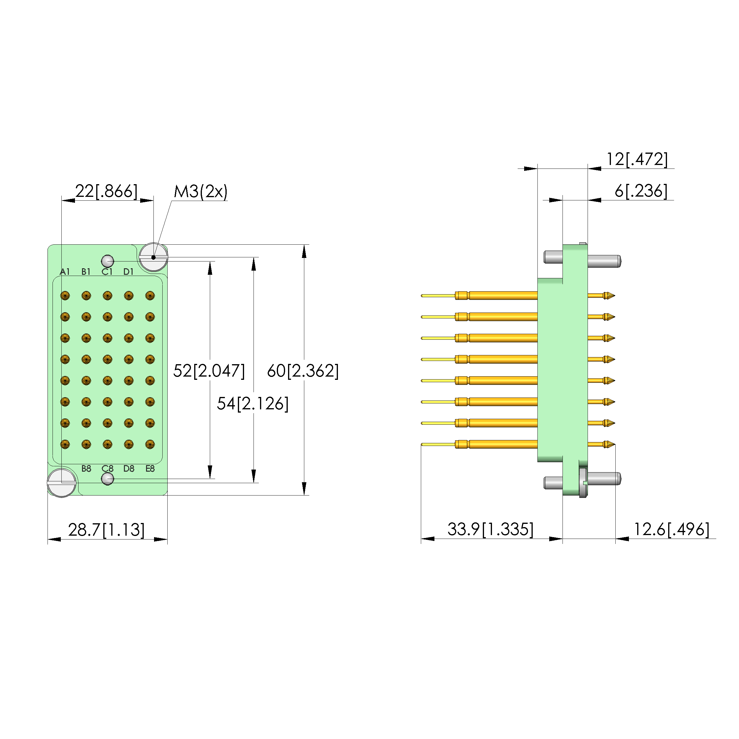 | Air distance (not wired): | 2.88 mm [.113 in] |