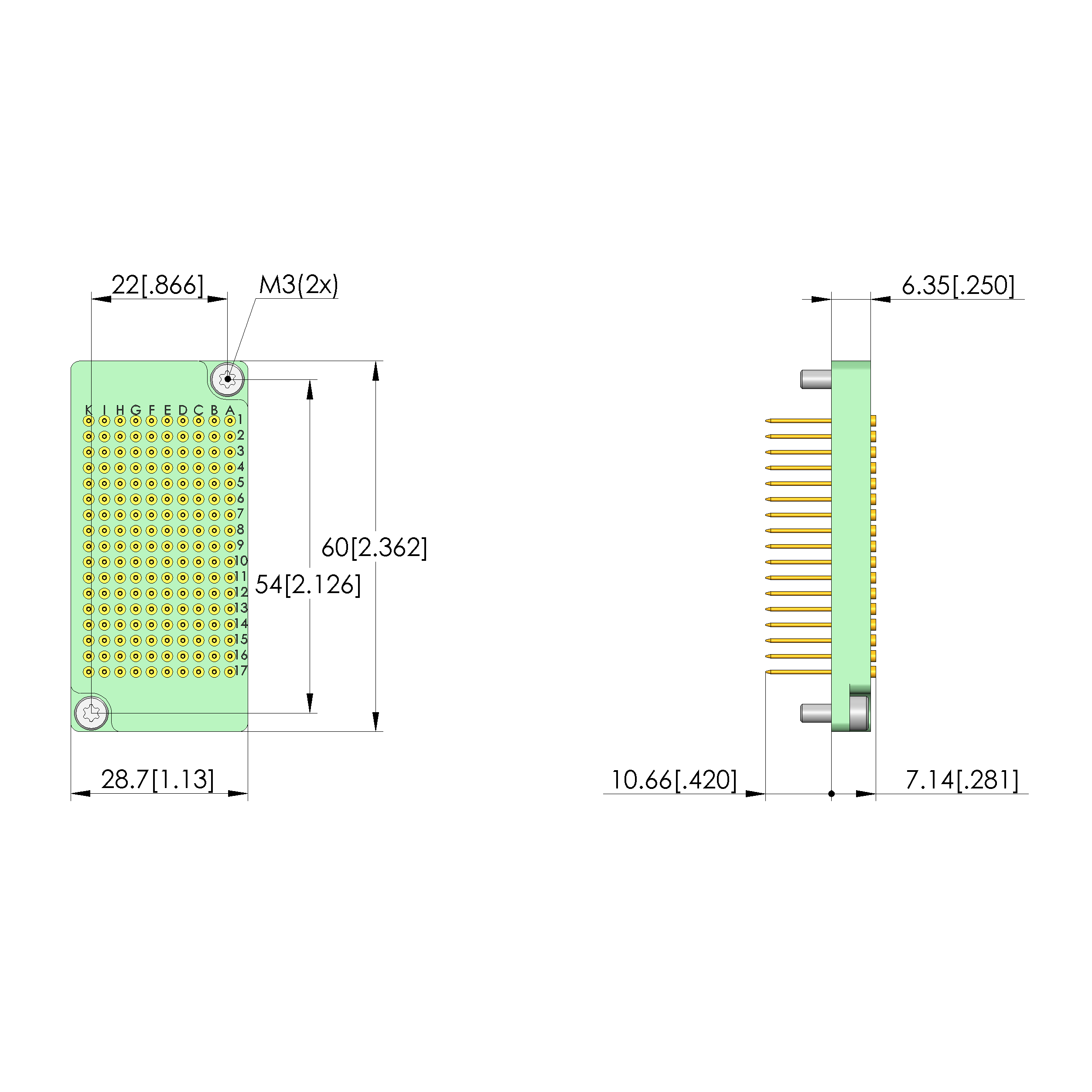 • Air distance (not wired): 0.64 mm [.025 in]