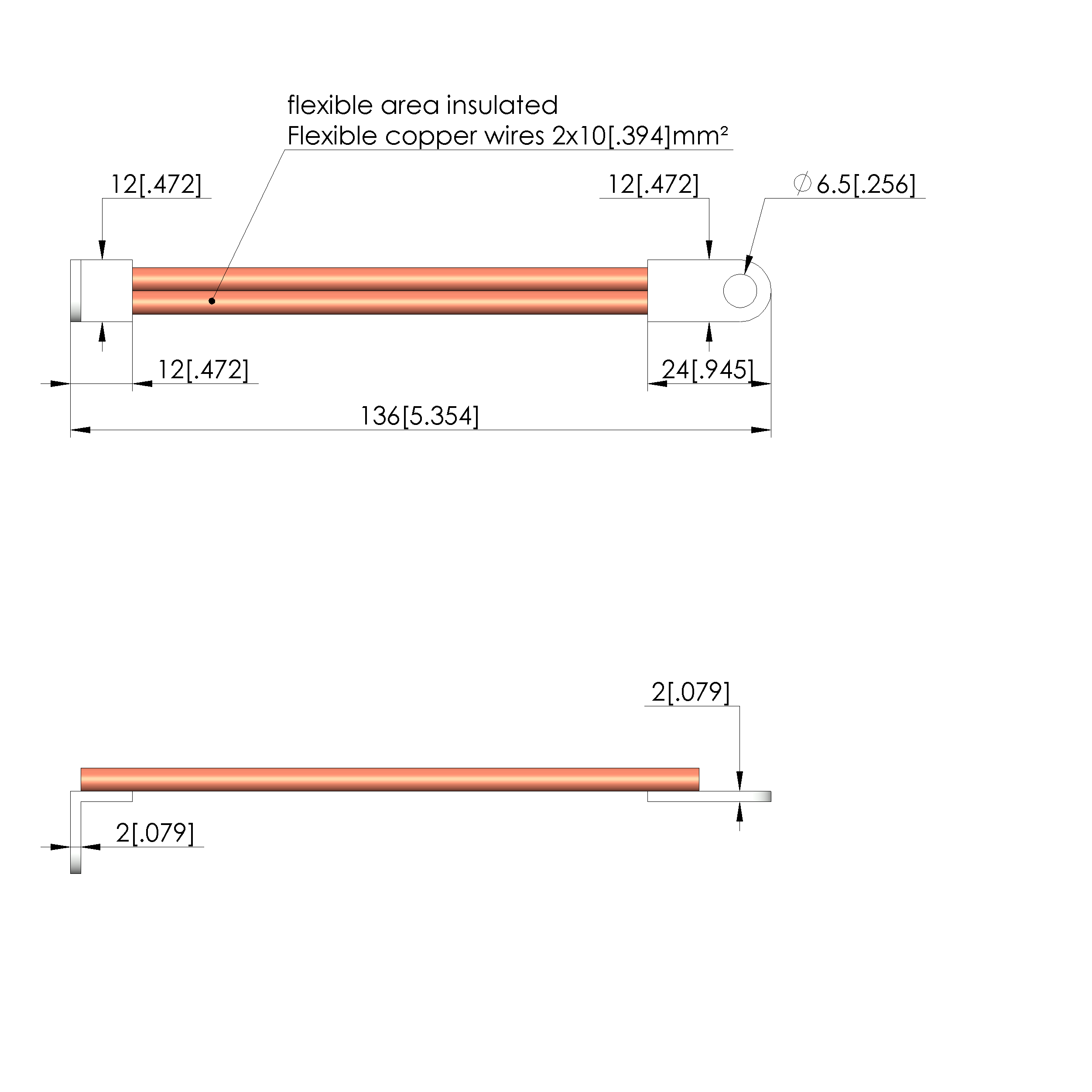 - Cable length: 140 mm [5.51 in]
