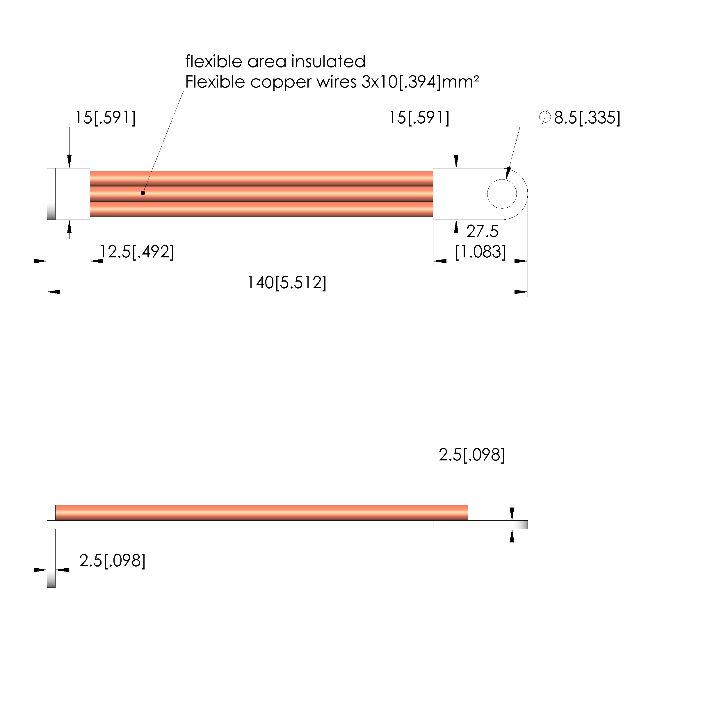 • Flexible copper cables to compensate the movement of the plunger