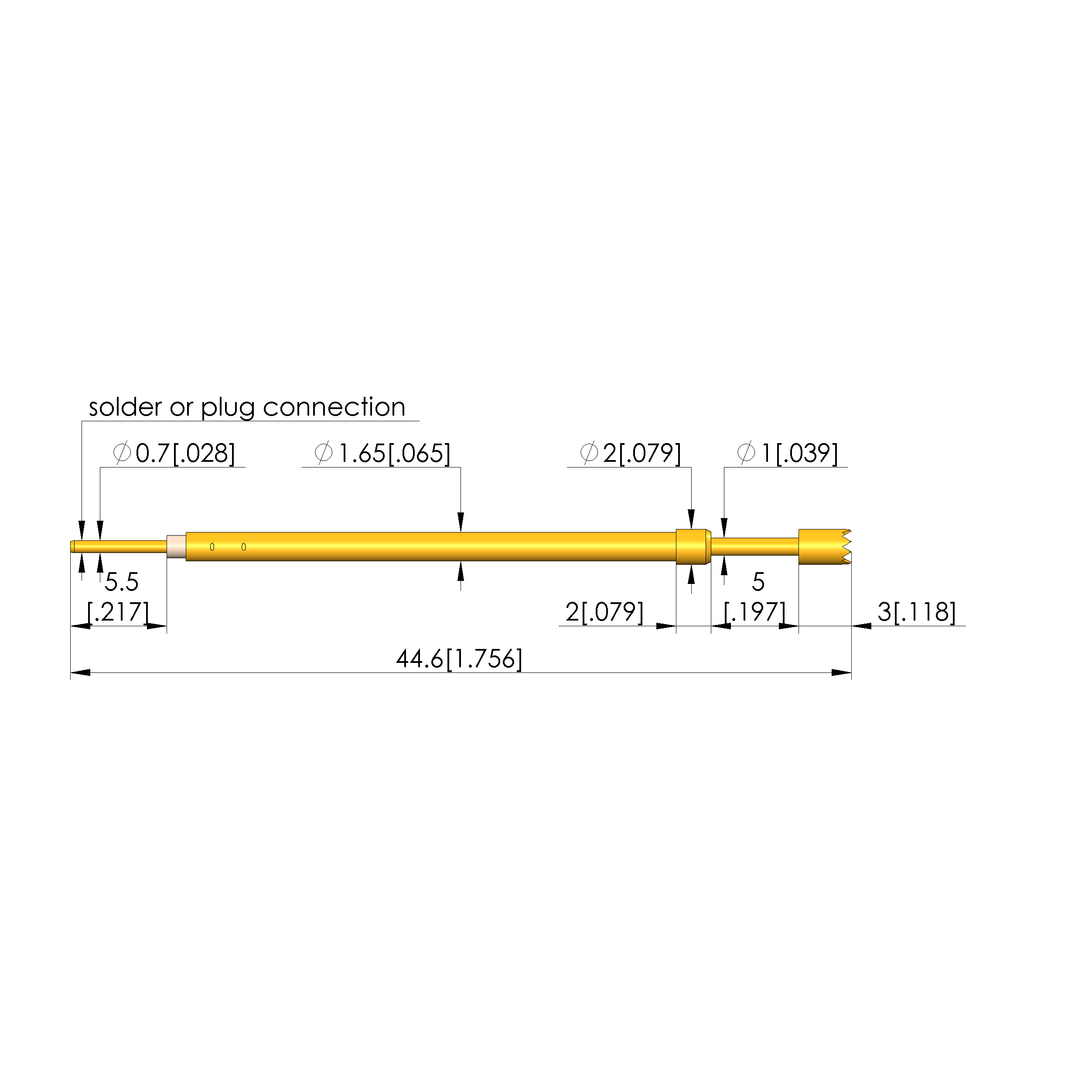 - Barrel diameter: 1.65 mm [.064 in]