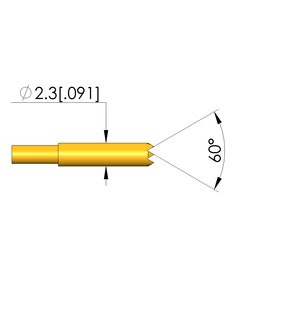 - Tip diameter: 2.3 mm [.09 in]