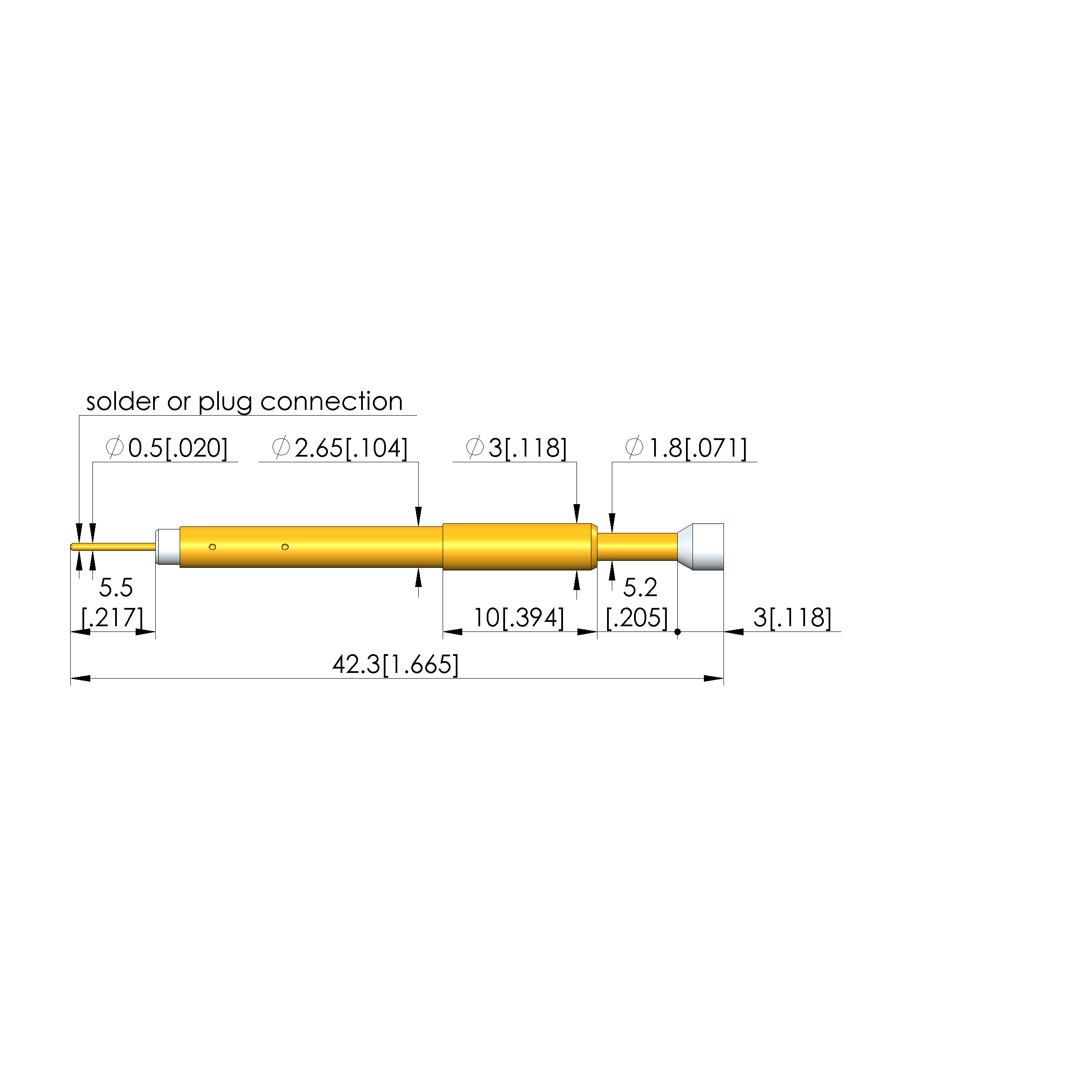 • Barrel diameter: 2.65 mm [.104 in]