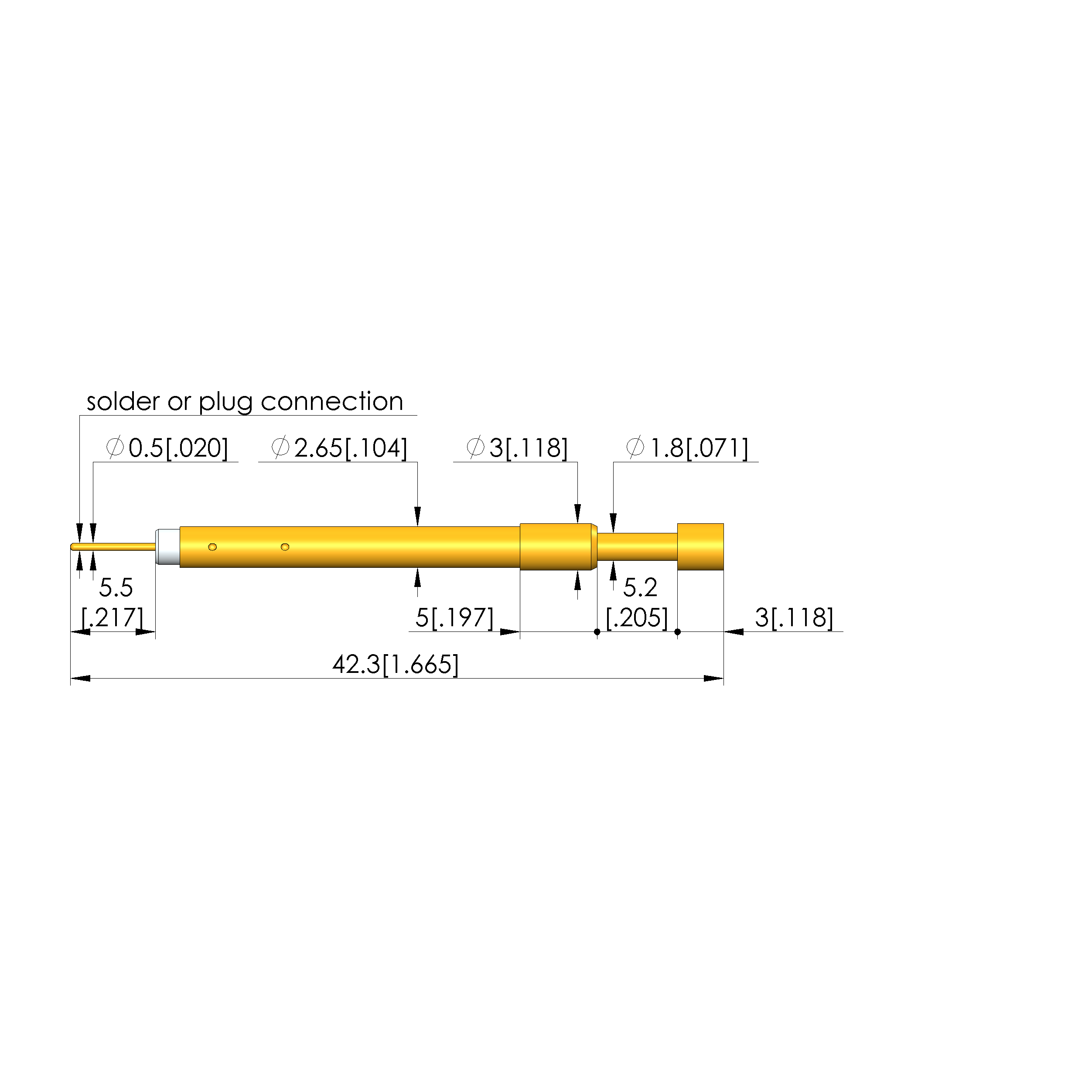 - Barrel diameter: 2.65 mm [.104 in]