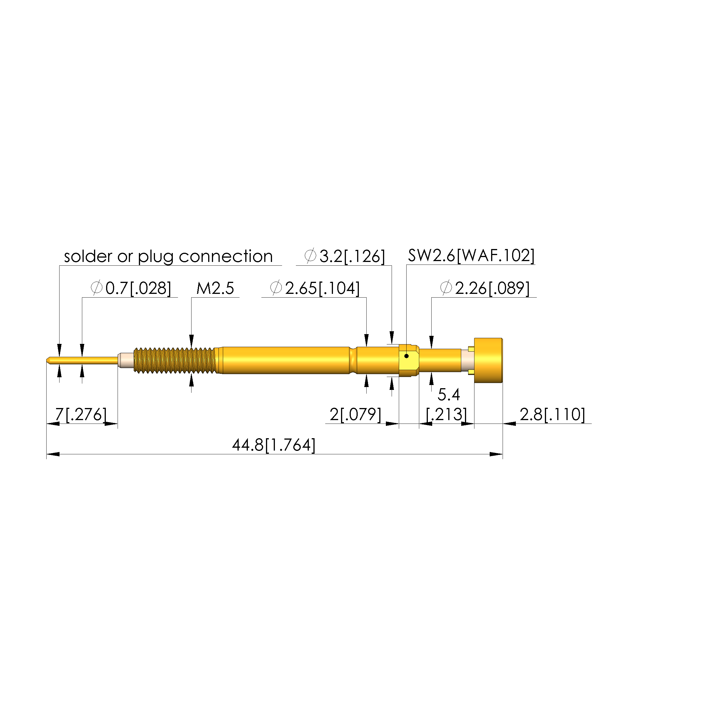 • Barrel diameter: 2.65 mm [.104 in]