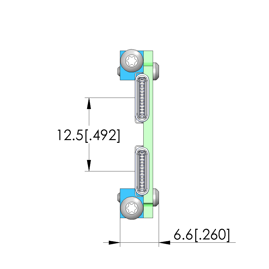 - Colour-coded assignment of the HSD connectors, blue for HSD interface block on the DUT side