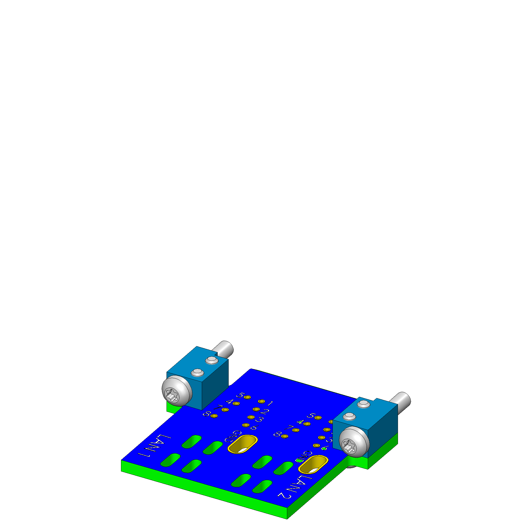 • Signal connection by soldering of commercially available LAN cables, separated on one side, to 8 free solder vias with ground.