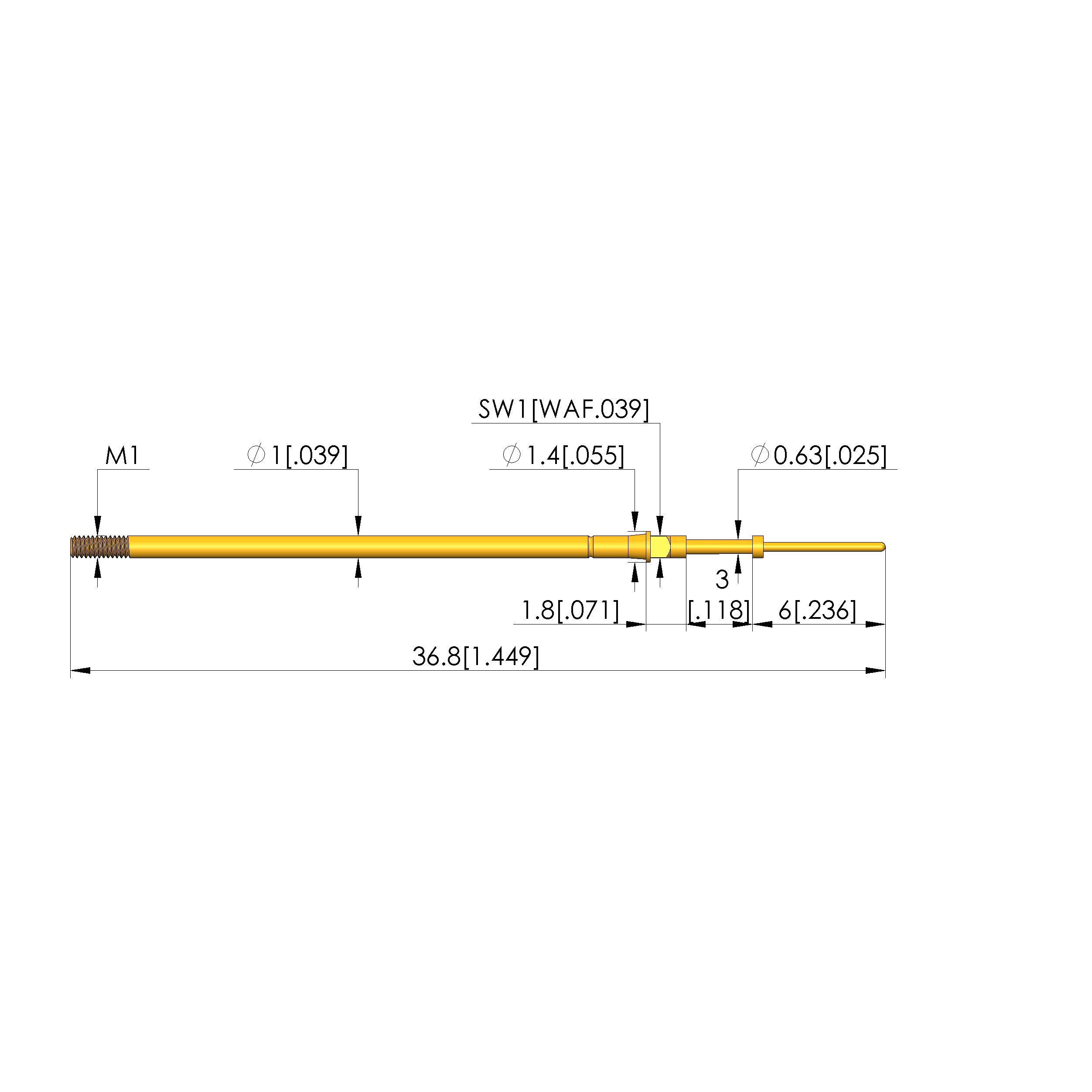 | Total length: | 36.8 mm [1.44 in] |