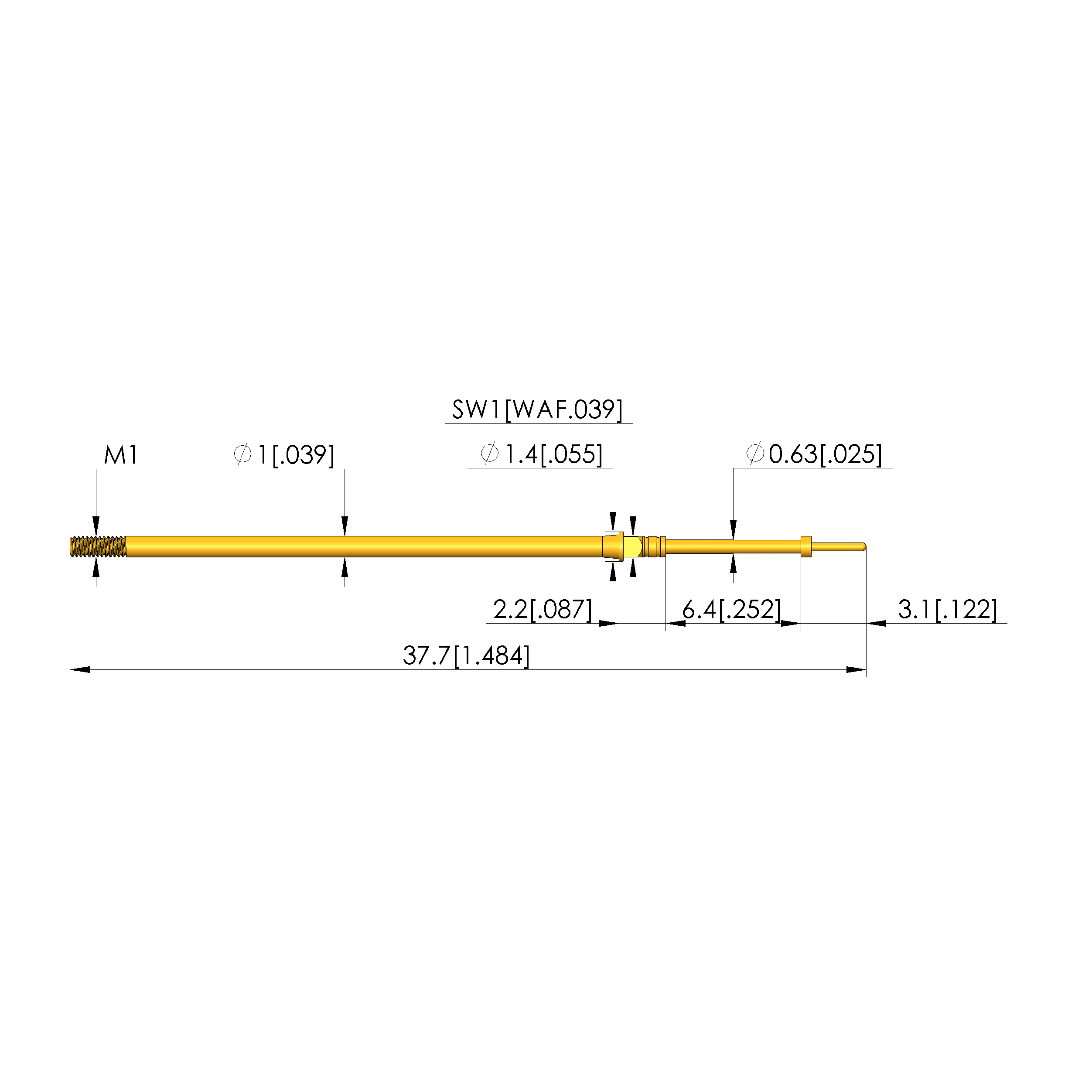 - Barrel diameter: 1 mm [.039 in]