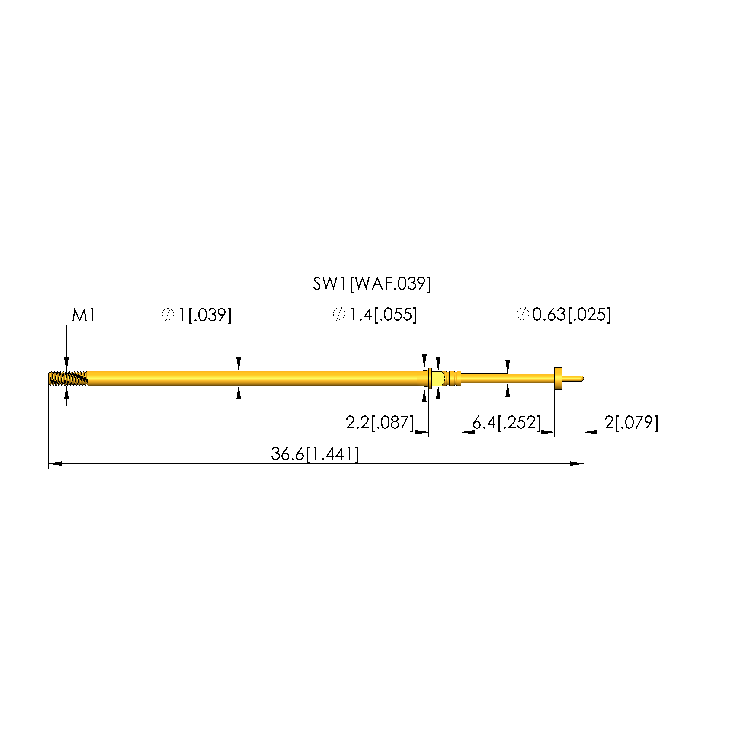 | Total length: | 36.6 mm [1.44 in] |