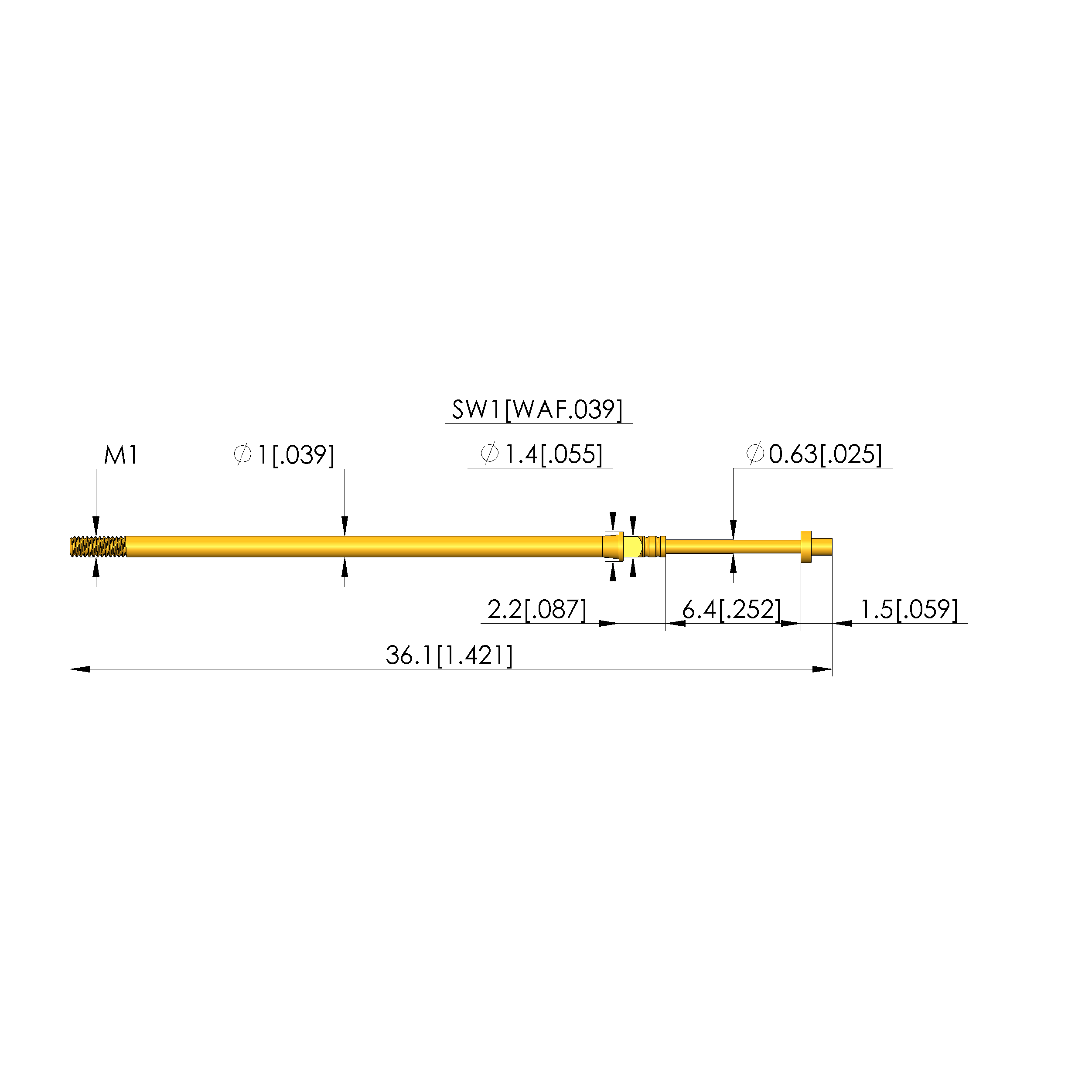 • Total length: 36.1 mm [1.42 in]