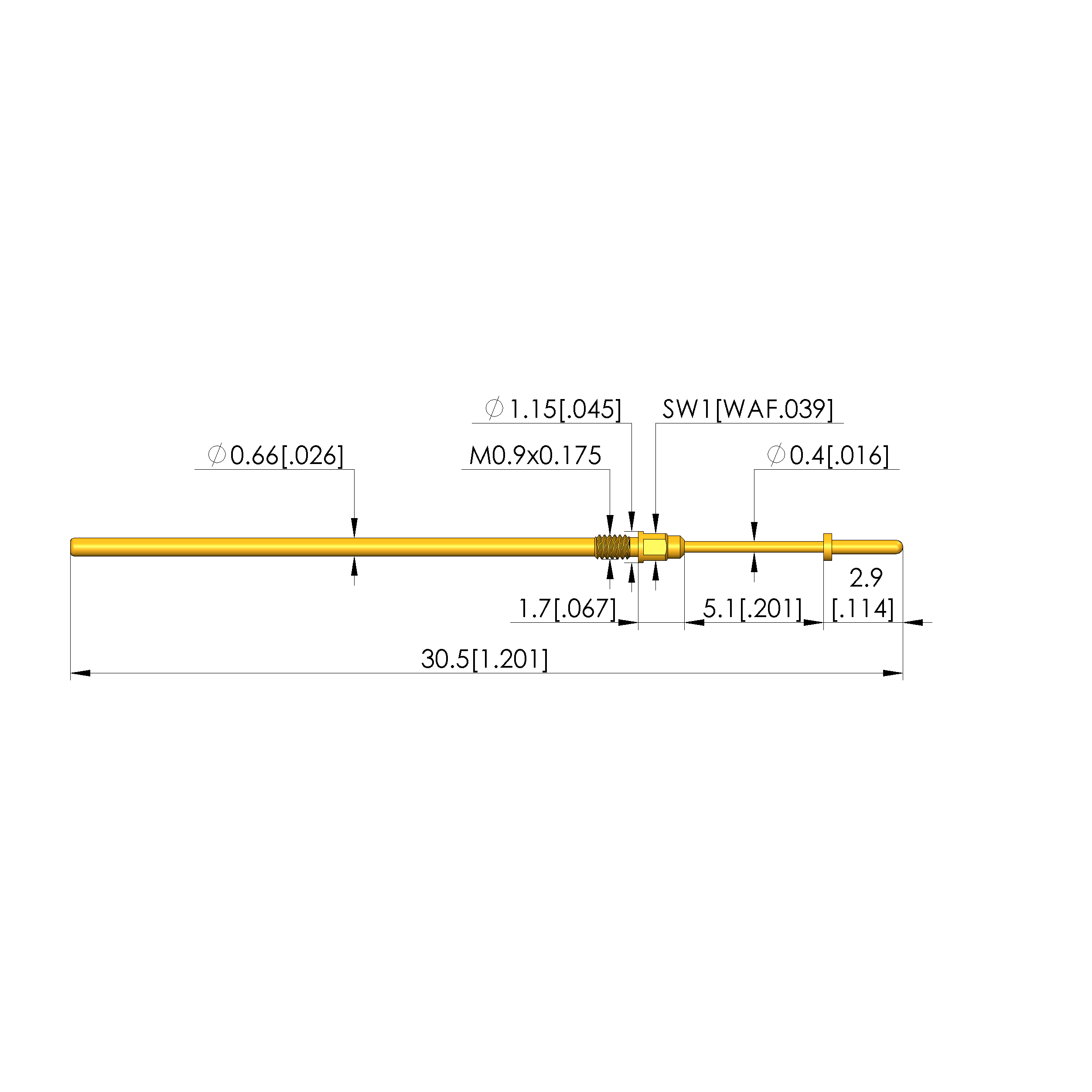 - Barrel diameter: 0.66 mm [.025 in]