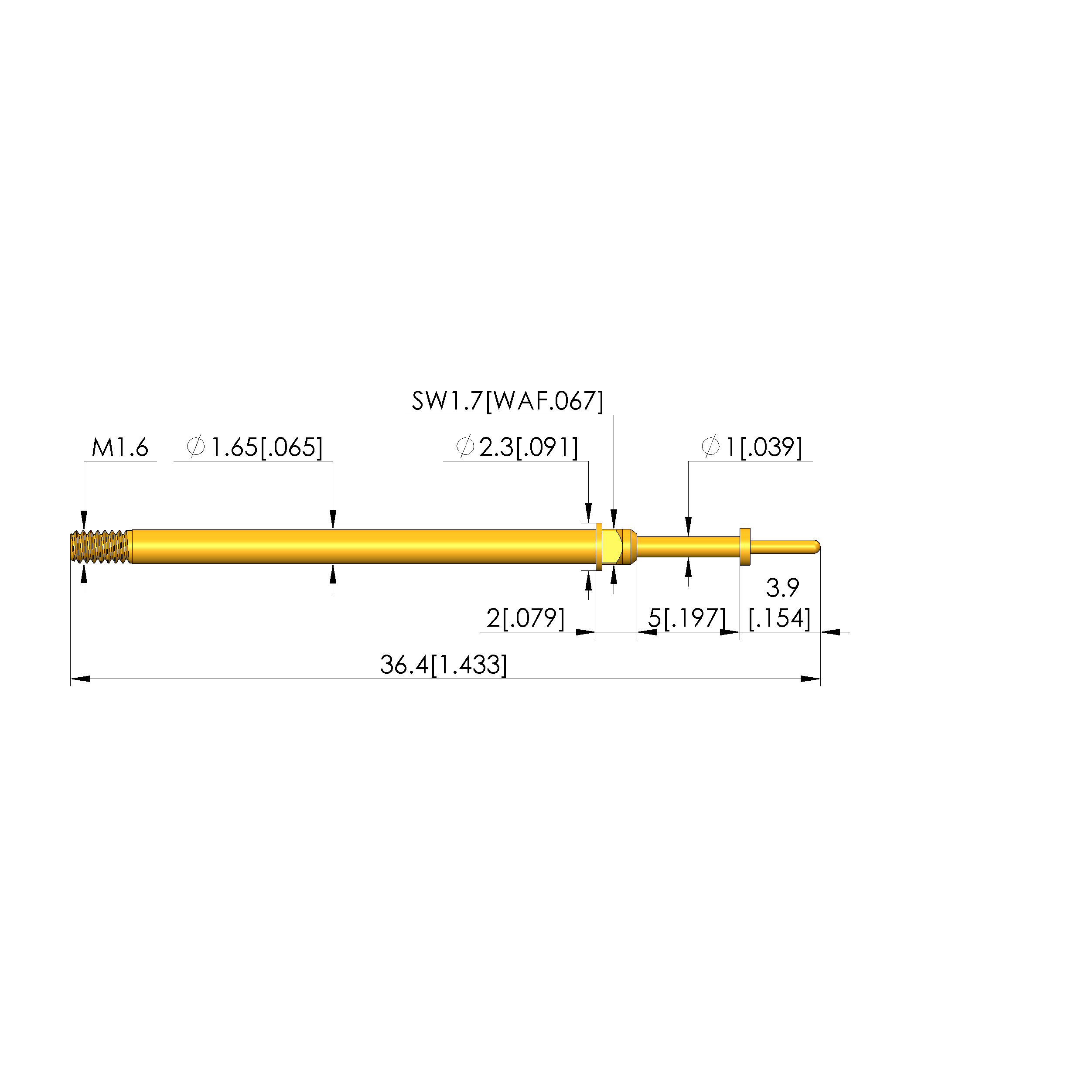 - Barrel diameter: 1.65 mm [.064 in]