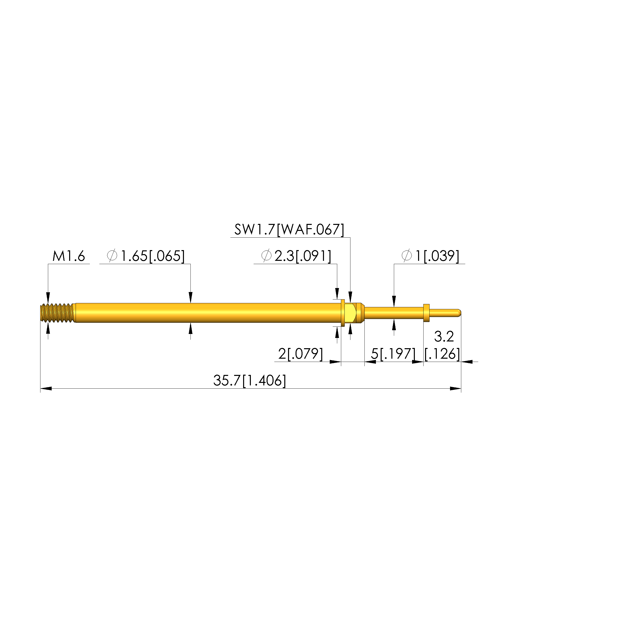 - Barrel diameter: 1.65 mm [.064 in]