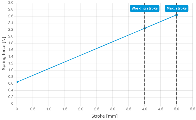 - Spring force at working stroke: 2.25 N [8.09 ozf]