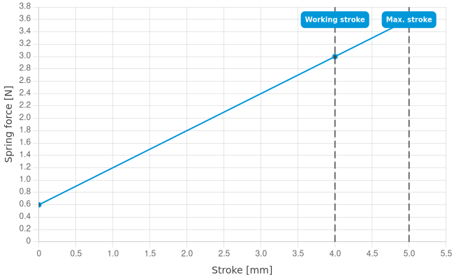 | Spring force at working stroke: | 3 N [10.7 ozf] |