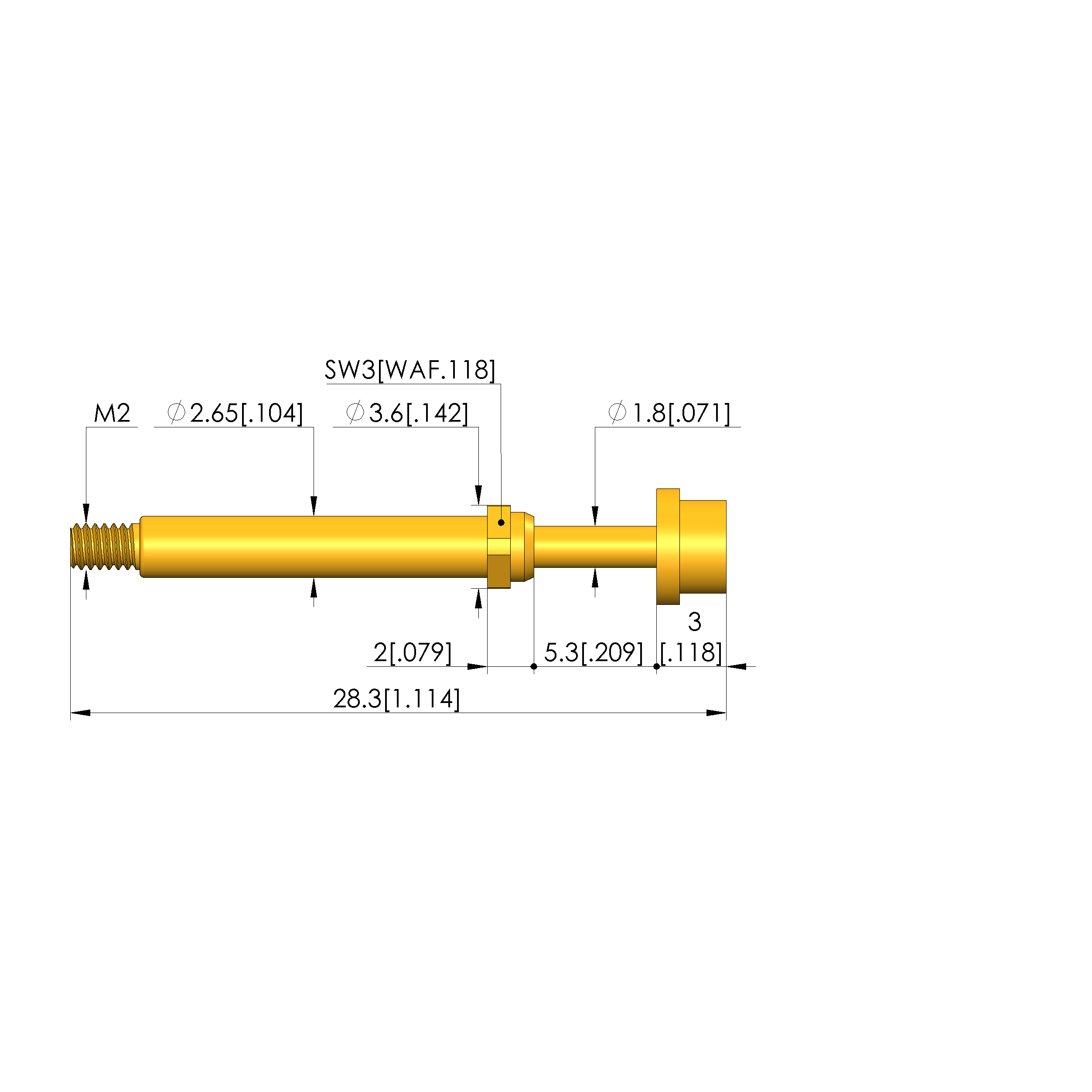 - Barrel diameter: 2.65 mm [.104 in]