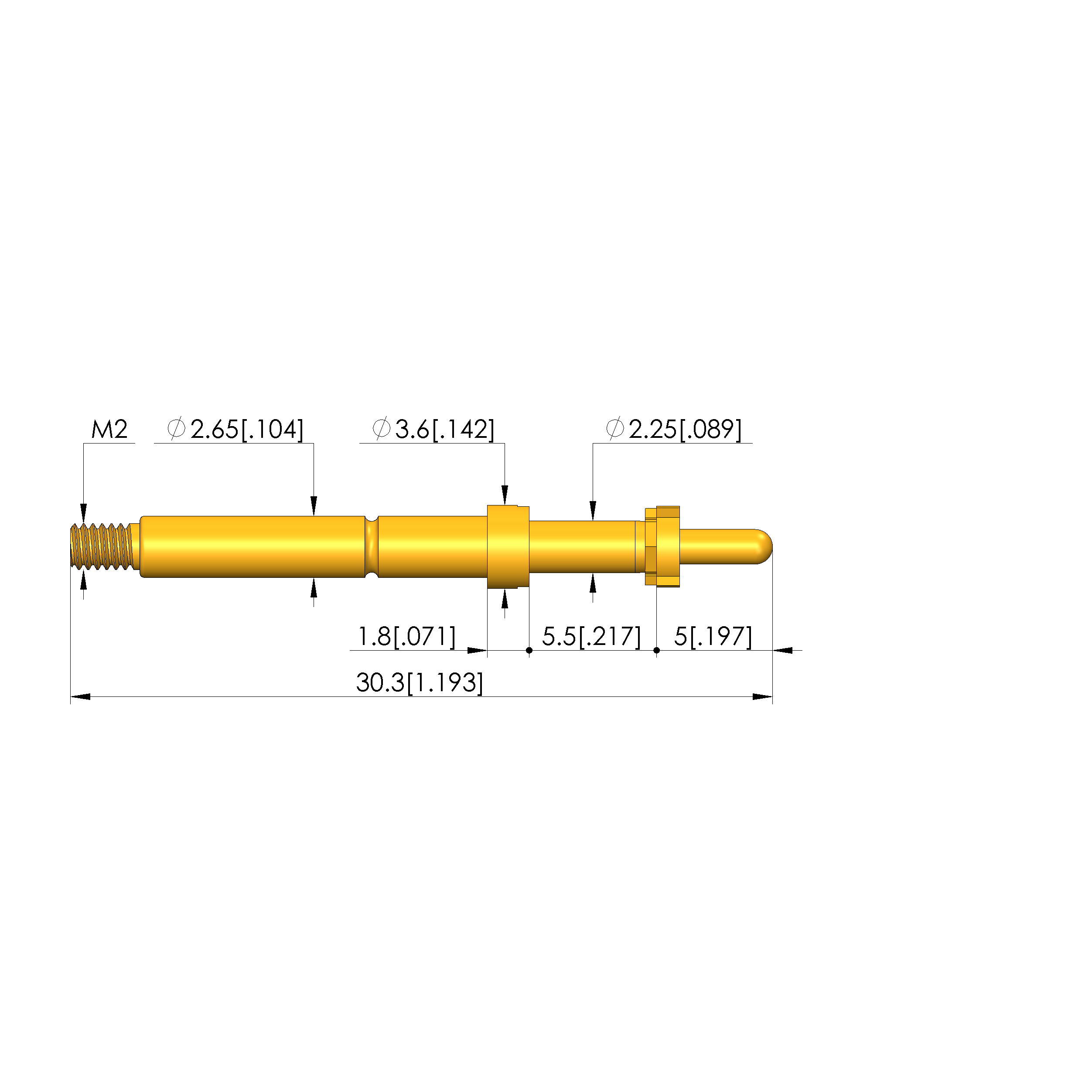 - Barrel diameter: 2.65 mm [.104 in]