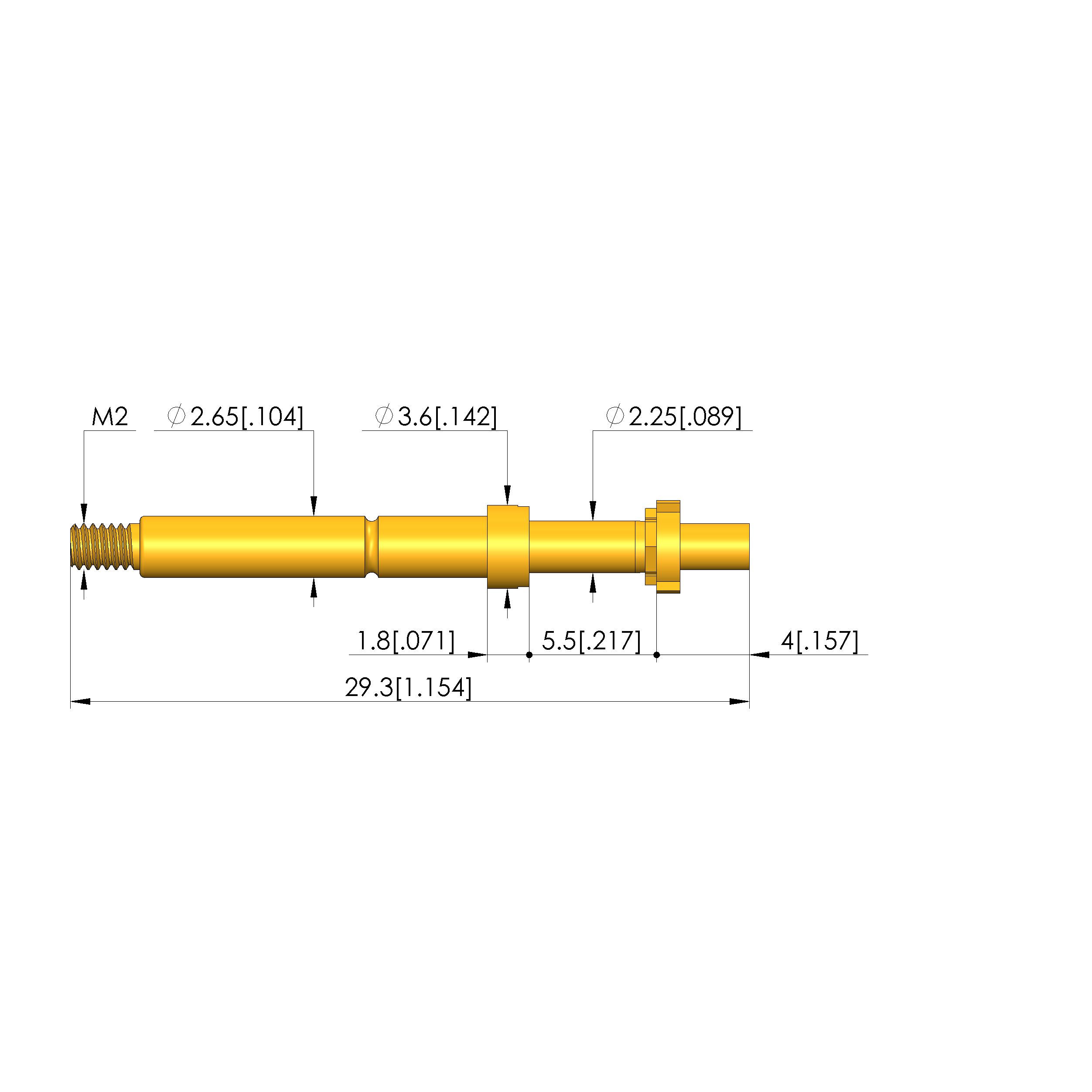 - Total length: 29.3 mm [1.15 in]
