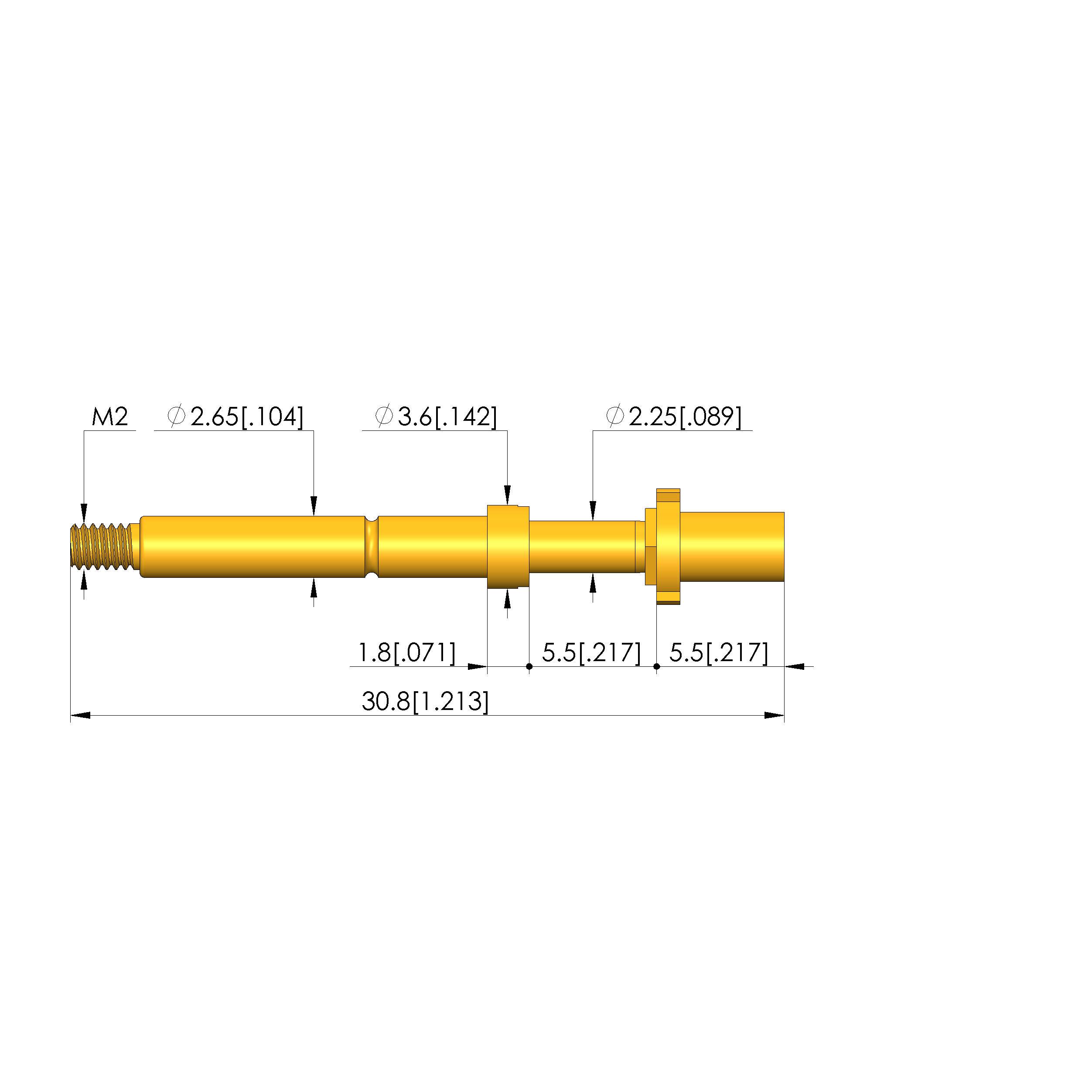 - Barrel diameter: 2.65 mm [.104 in]