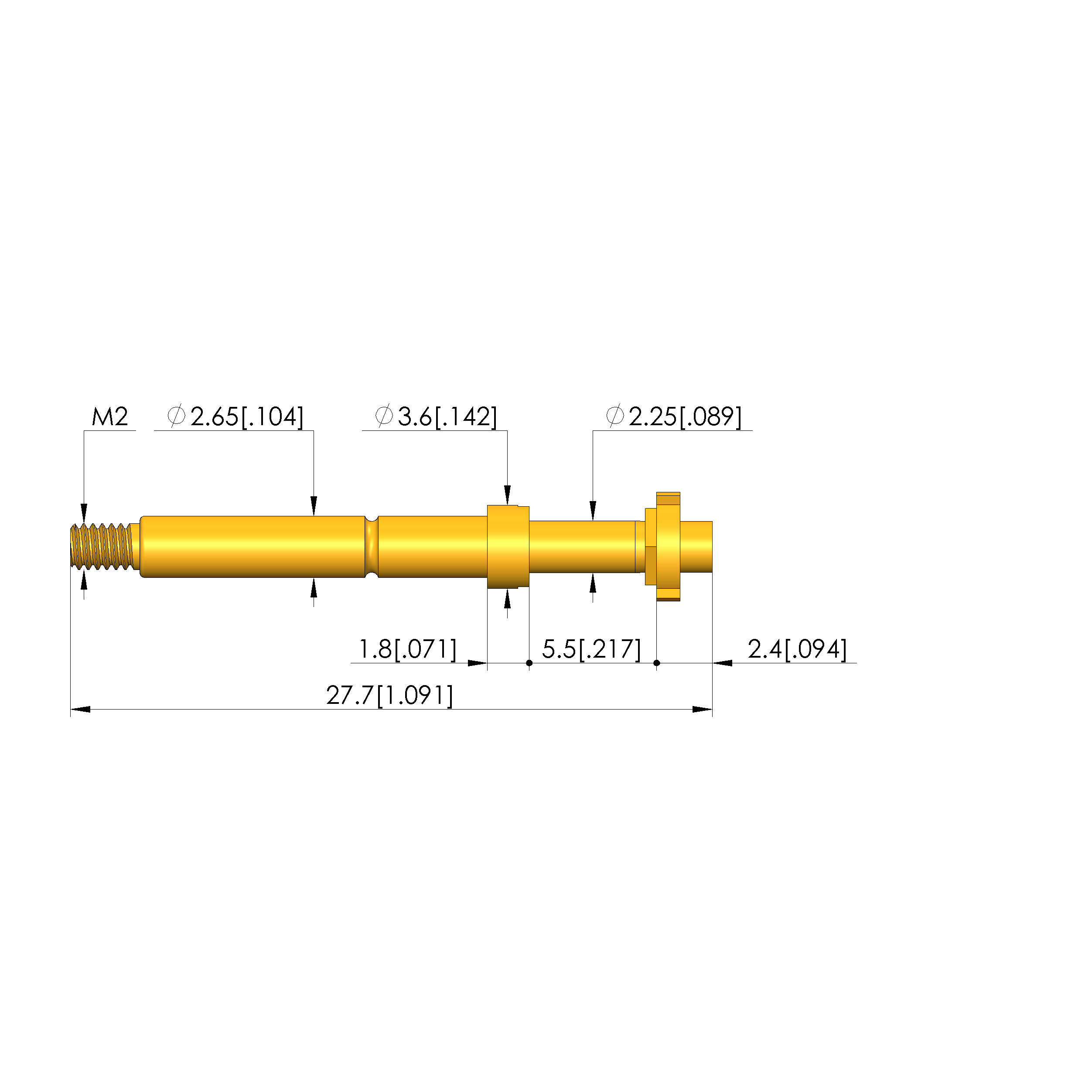 • Barrel diameter: 2.65 mm [.104 in]
