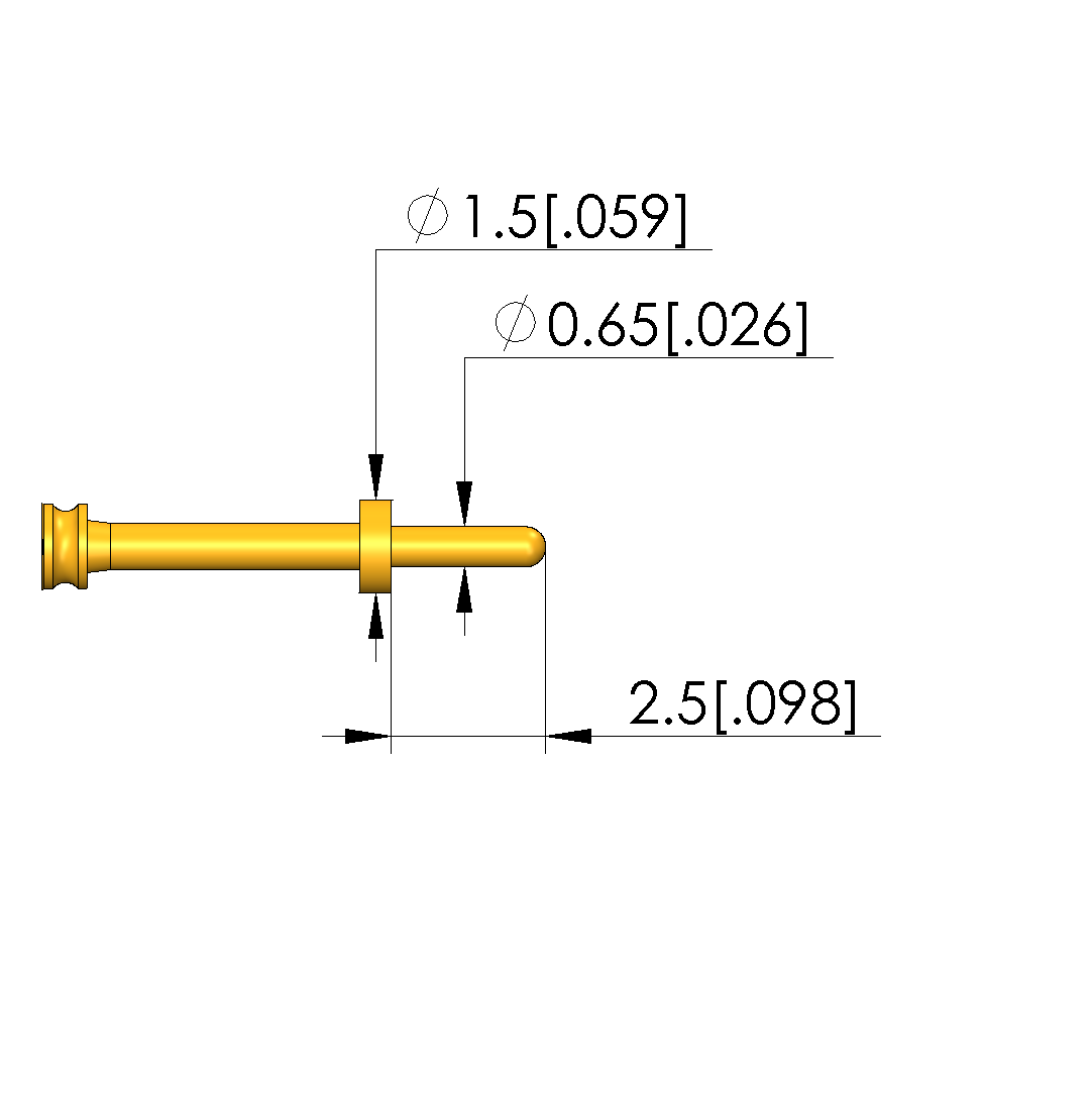- Tip diameter: 0.65 mm [.025 in]