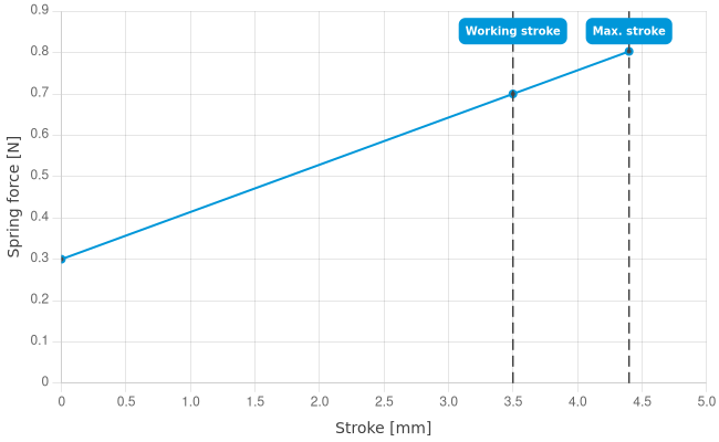 - Spring force at working stroke: 0.7 N [2.51 ozf]
