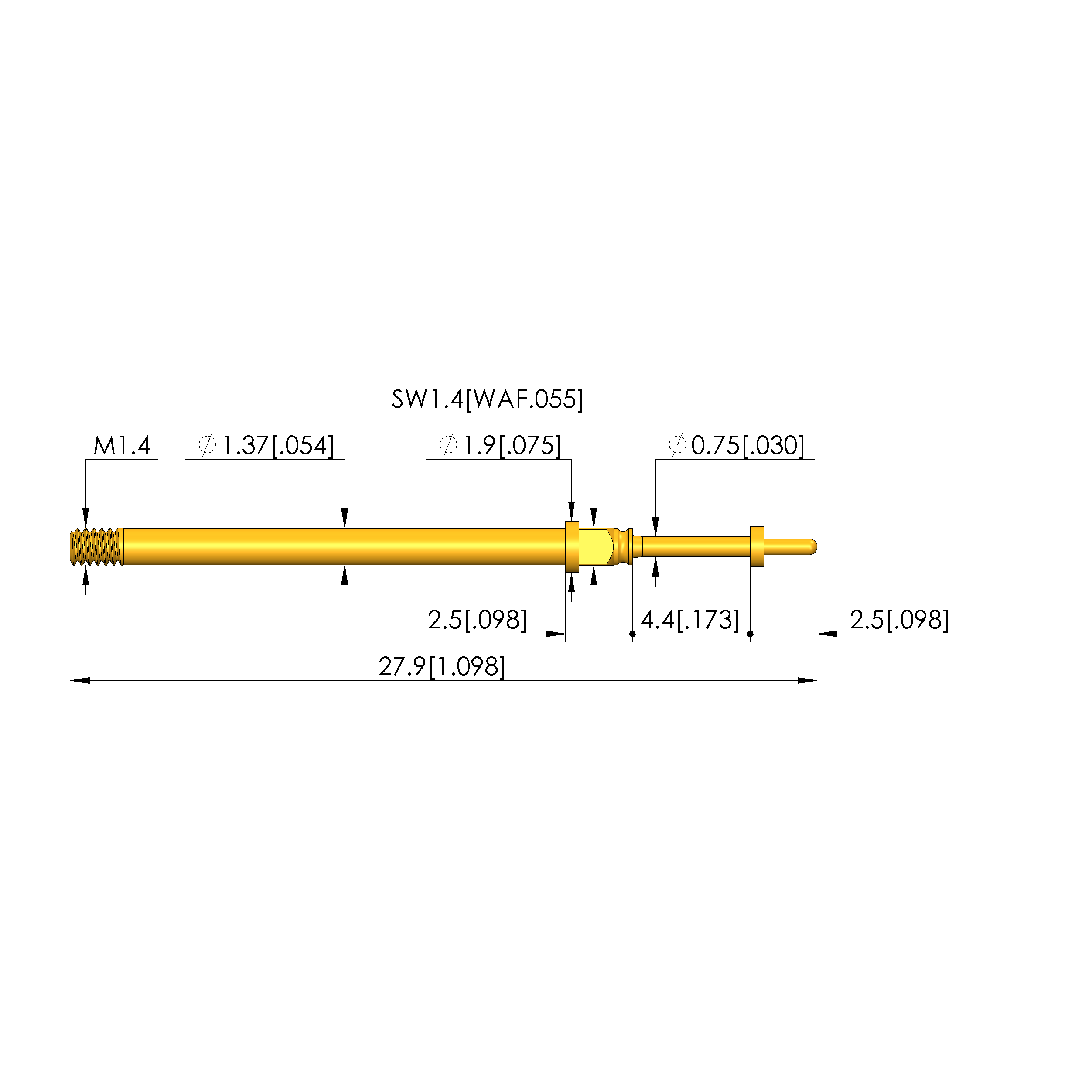 - Barrel diameter: 1.37 mm [.053 in]