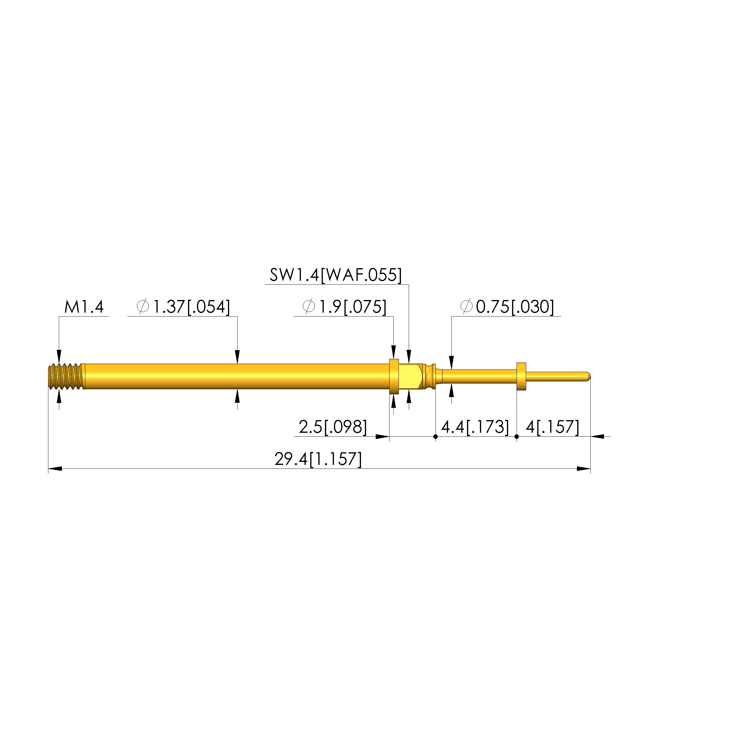 • Total length: 29.4 mm [1.15 in]